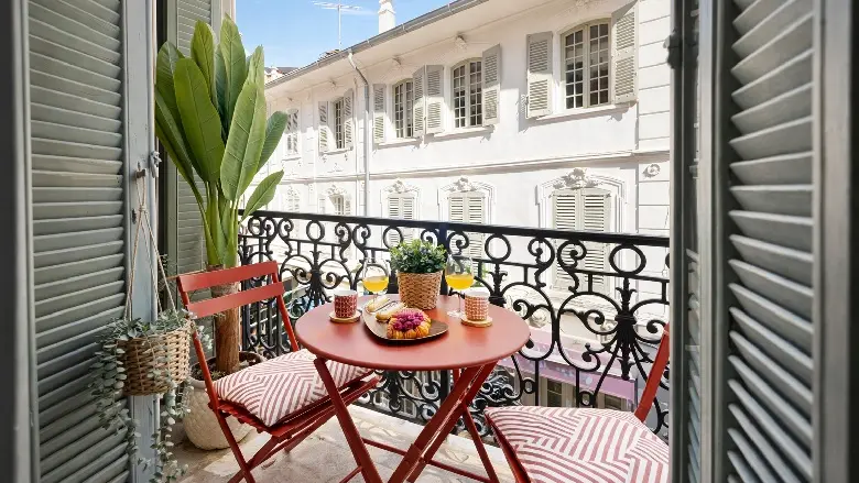 • Un balcon donnant sur la rue Meynadier permet de profiter de l’animation du centre-ville en journée, et d’une atmosphère calme et agréable en soirée.