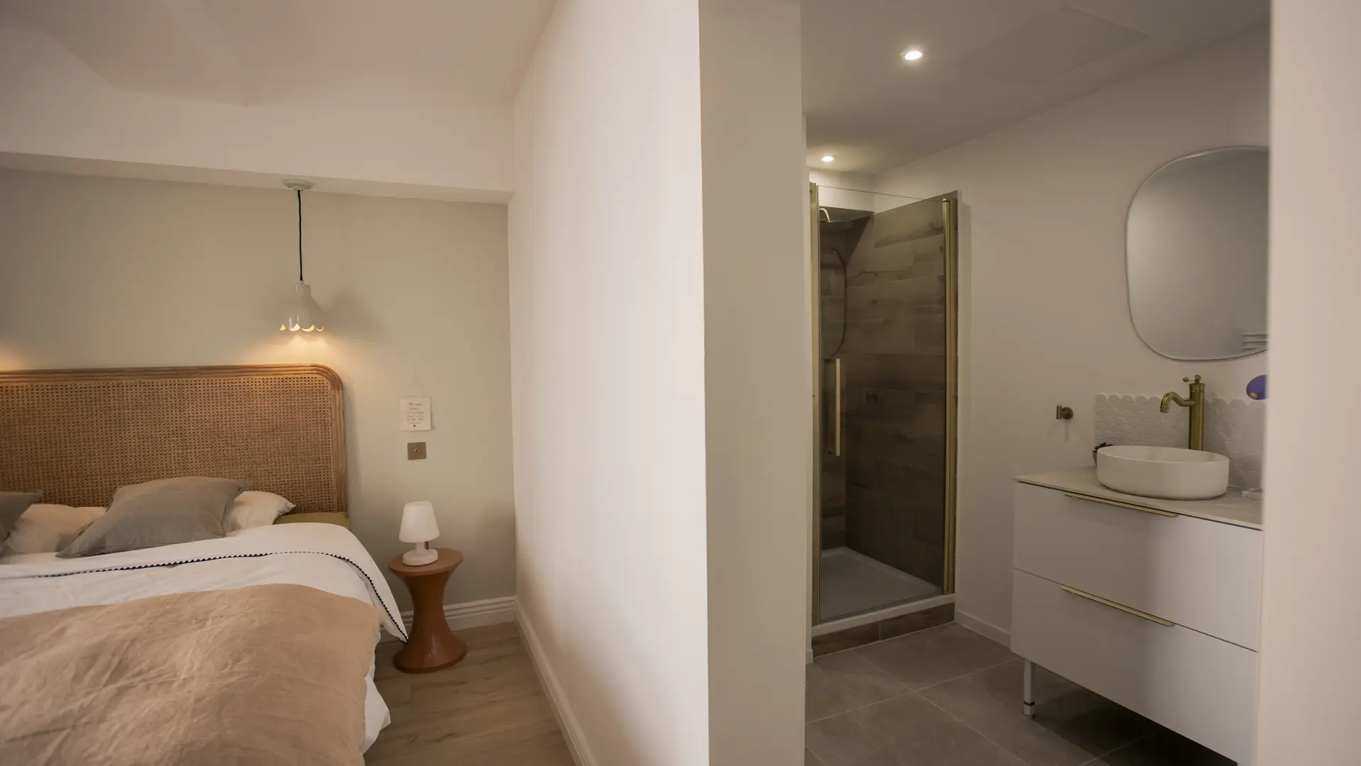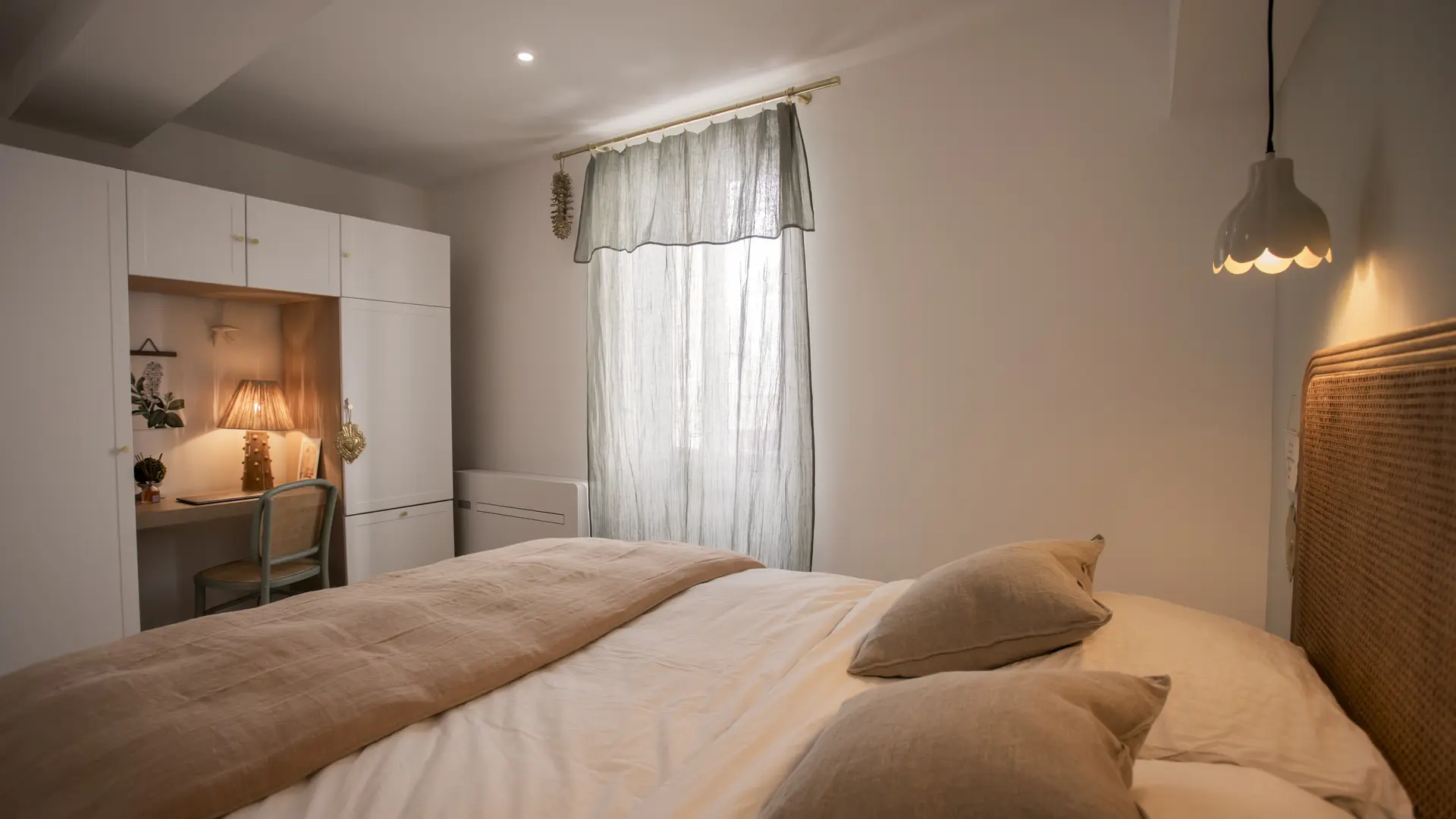 La Terra Cigala est un petit bijou de charme situé dans une rue très calme et classée patrimoine de Bandol. Au 1er étage d’une maison de village colorée, l’appartement de 45m2 a été conçu et optimisé pour un confort optimal. Vous serez charmé par ses finitions haut de gamme.Il se compose en deux espaces : d’un côté l’espace de vie avec une magnifique cuisine pour des courts ou longs séjours, un canapé lit en lin, une table pour 4 personnes et une superbe cheminée de l’époque. Puis, il y a l’espace nuit avec un Queen size, un joli dressing, un coin travail et sa salle d’eau attenante. À noter que l’appartement est sécurisé et climatisé.