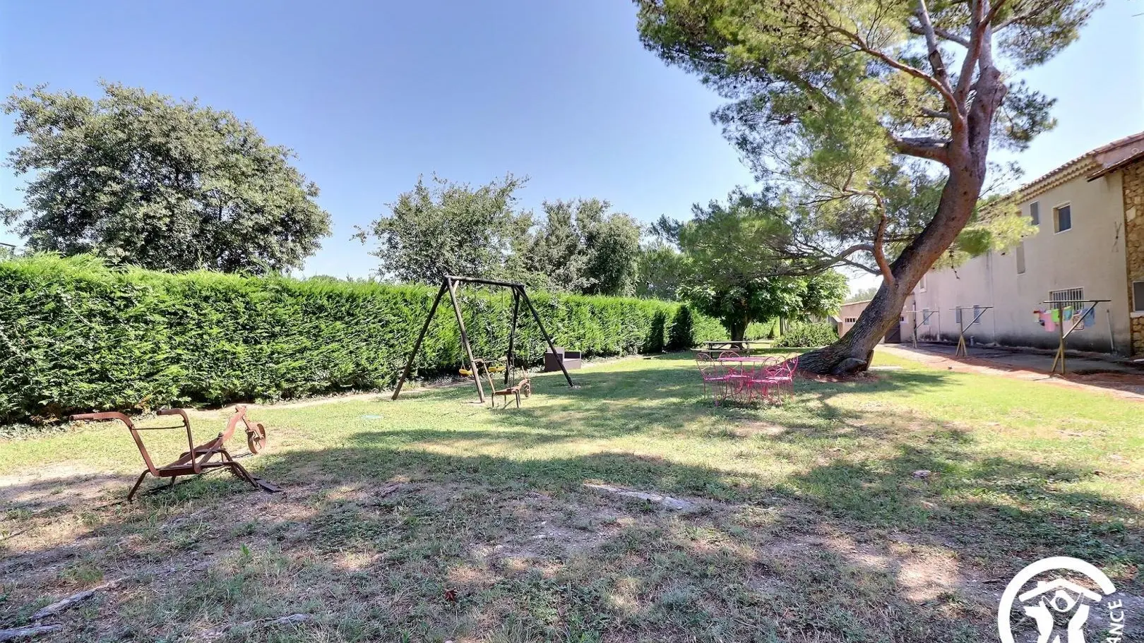 Espaces extérieurs communs avec les propriétaires : piscine sécurisée par alarme 11x6m (profondeur 1.50m max) ouverte du 01/06 au 30/09, table de ping-pong, terrain de pétanque, jeux d'enfants.