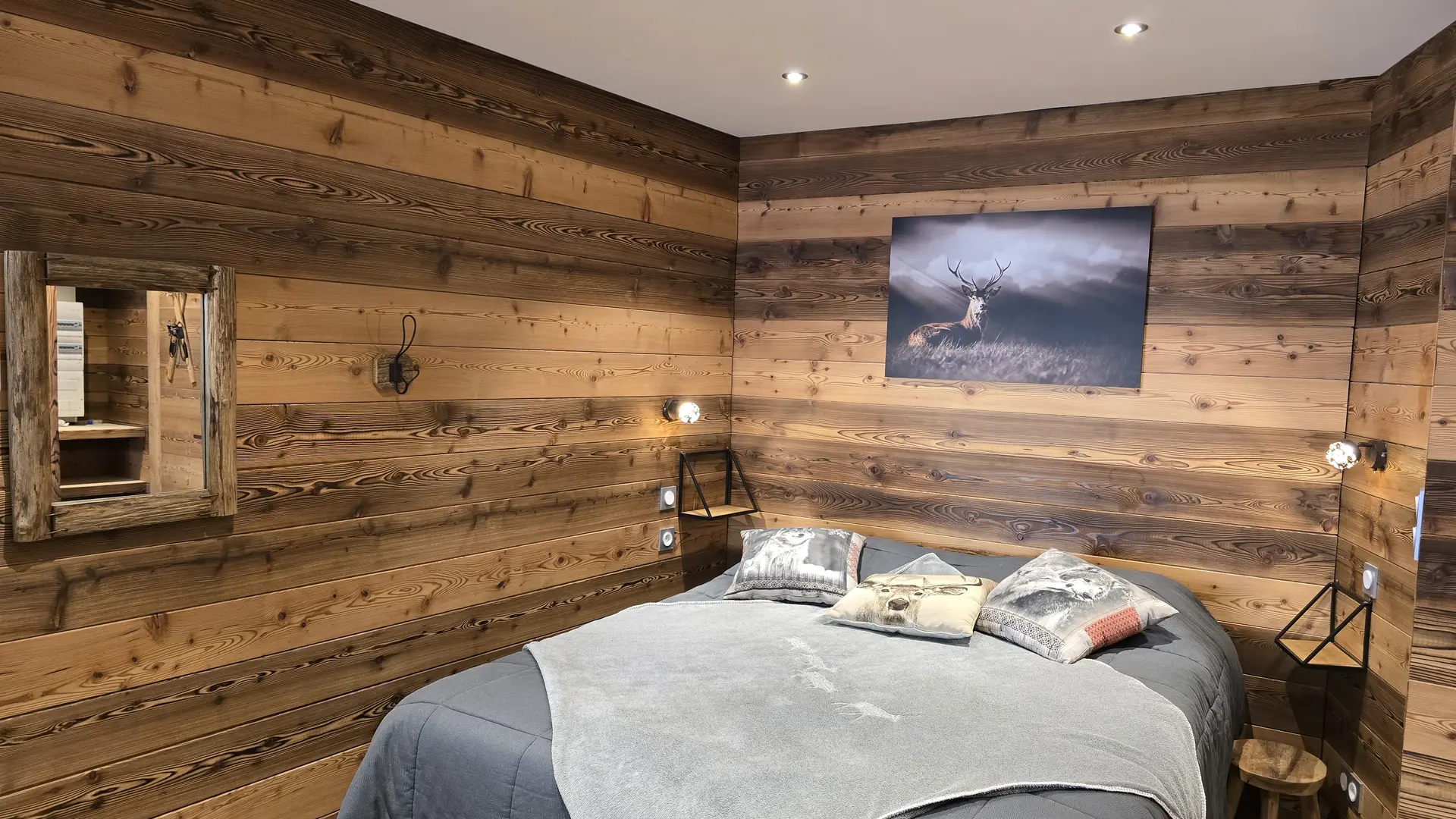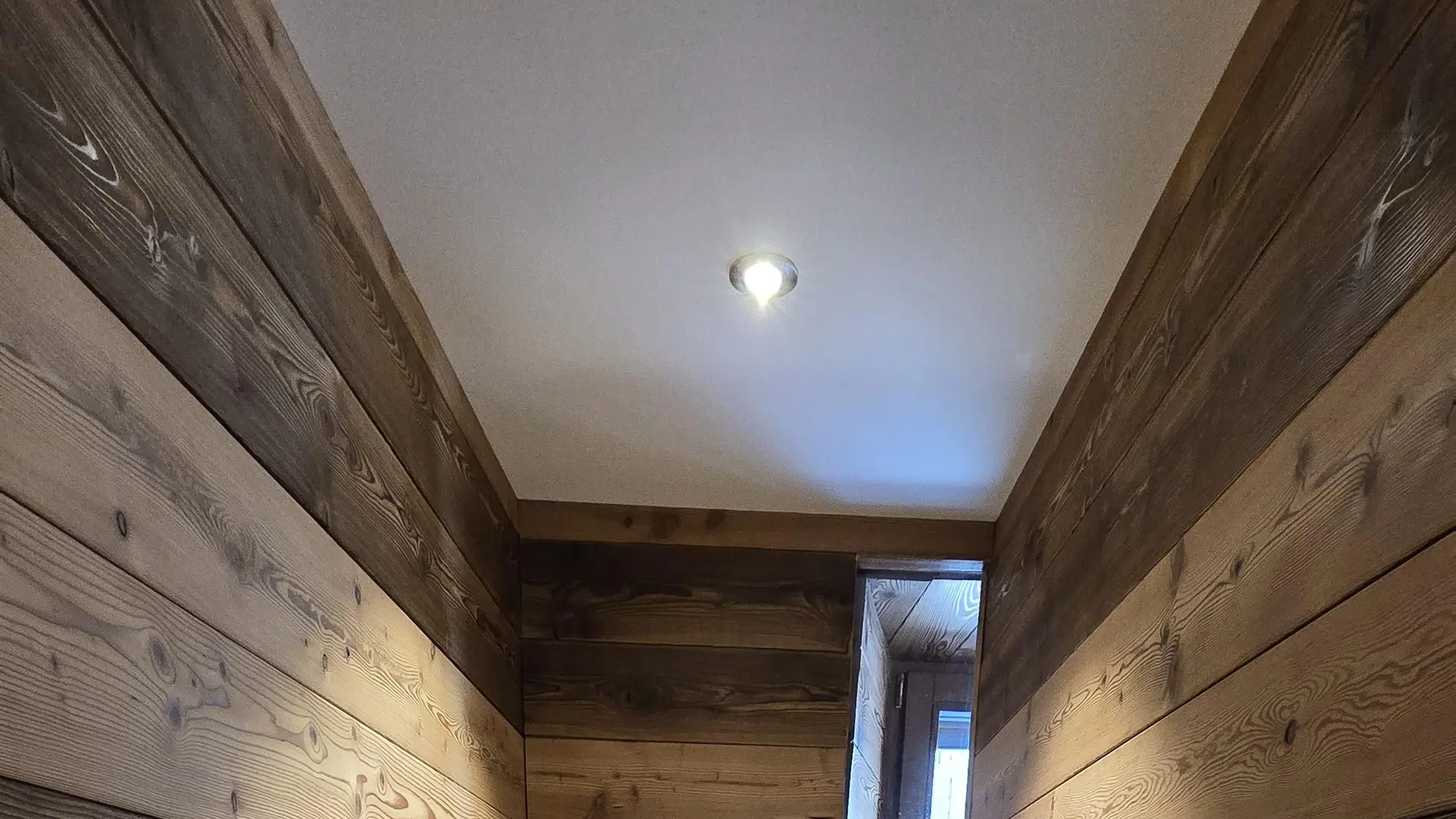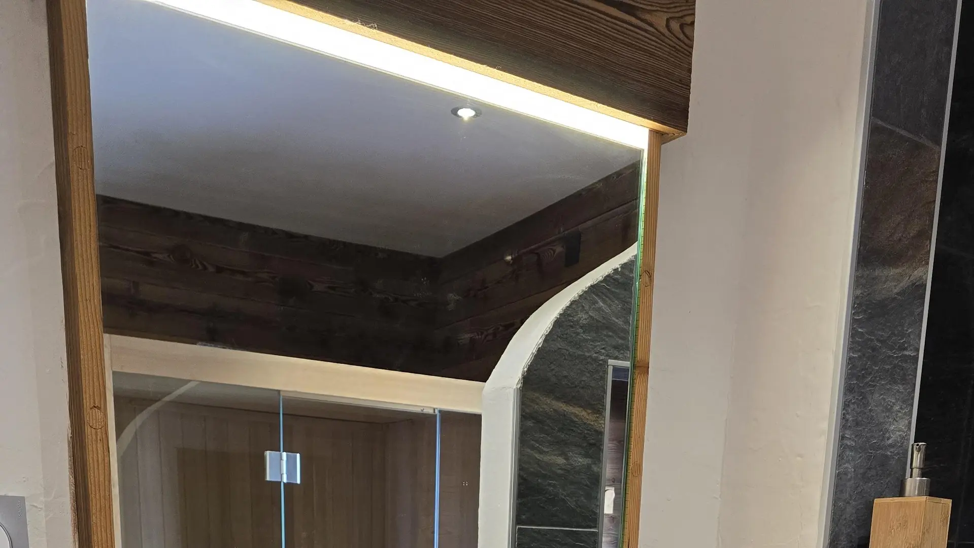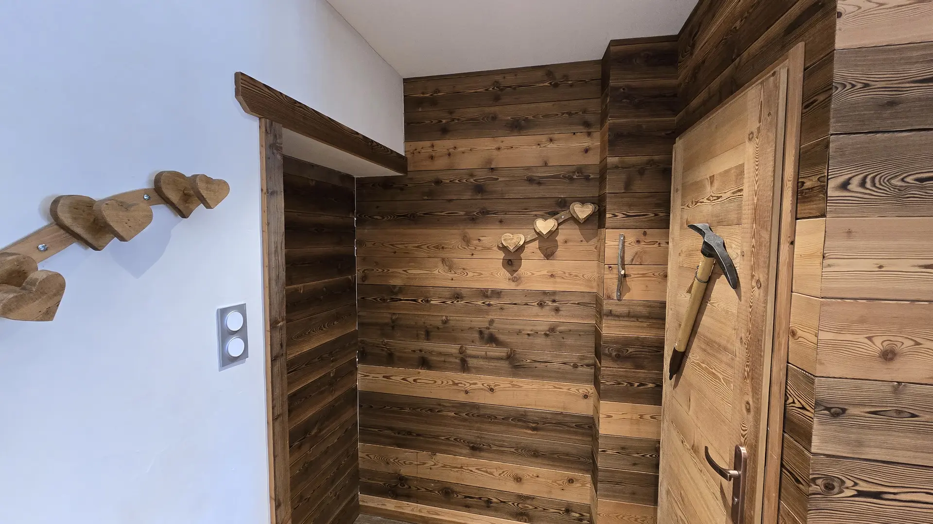 Douches à l'Italienne, sauna dans la chambre de Névacosy, mélèze, vieux bois, très chaleureux, ambiance montagnarde.