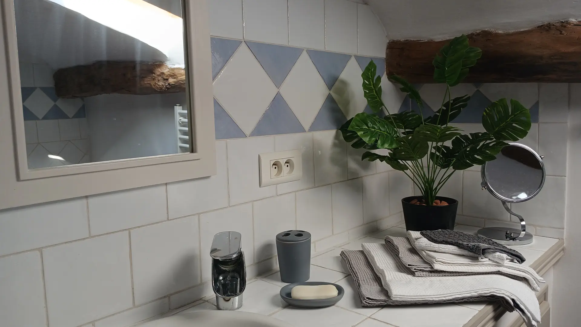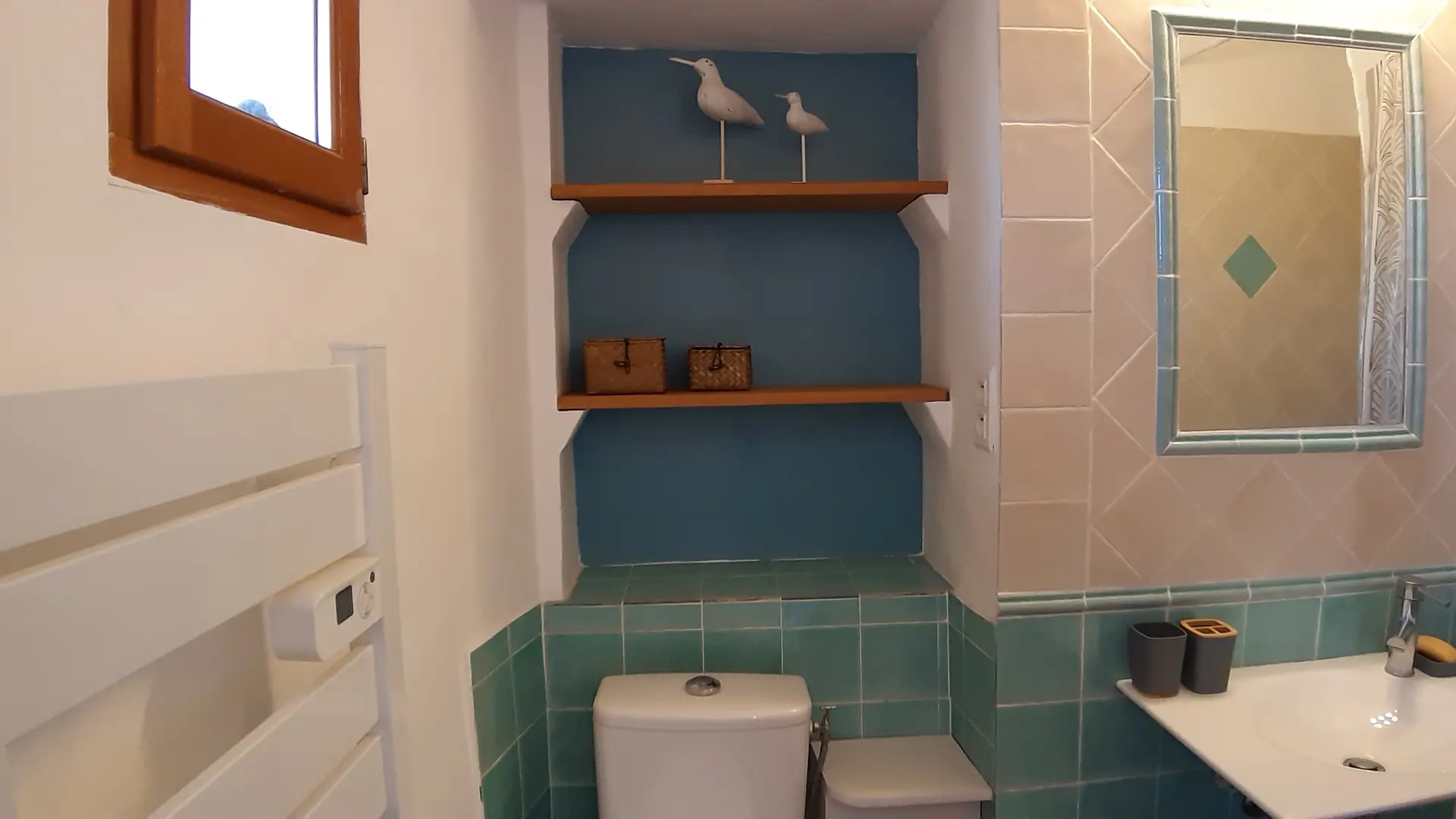 La maison compte une chambre parentale au niveau deux, équipée d’un lit double, ainsi qu’une chambre junior, ou plus, pouvant accueillir deux personnes en lit tiroir de 90. La seconde chambre parentale, équipée également d’un lit double en 160, sous les toits, occupe le dernier niveau, la salle de bain étant en accès immédiat sur le pallier. Cette dernière chambre est équipée d’un espace bureau où le télétravail peut être pratiqué, la fibre étant installée sur l’habitation. Linge de lit et de toilette compris.