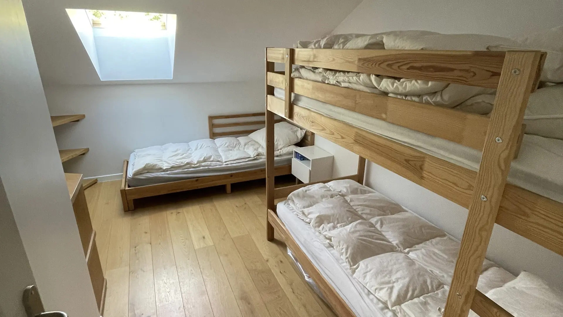 - Chambre avec 2 lits superposés (90x190) et un lit tiroir modulable (80x200 à 160x200), et de nombreux rangements.