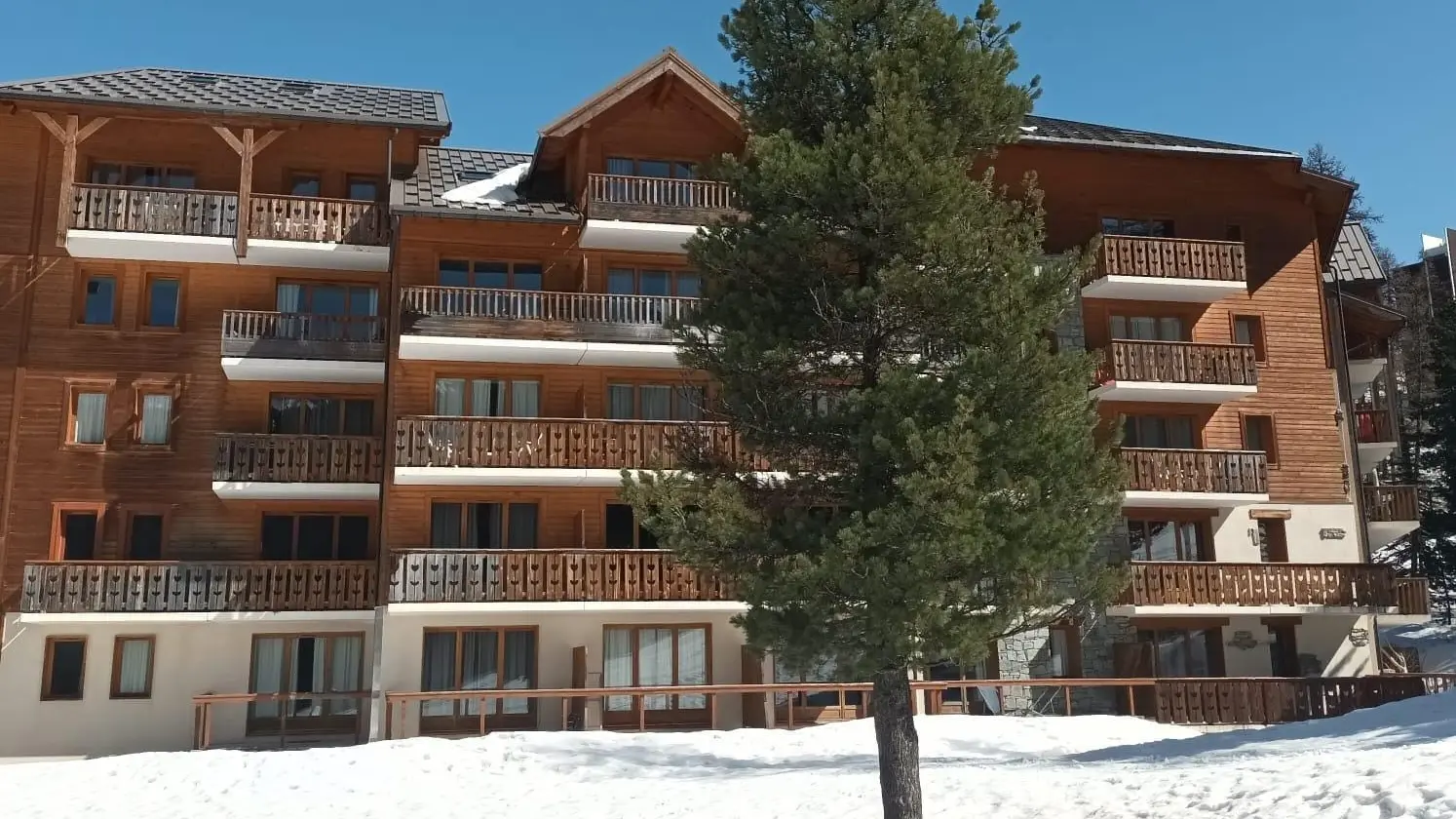 La résidence comporte deux bâtiments. Le logement proposé est dans le bâtiment B qui est face à la montagne. La surface au sol est de 65m2.