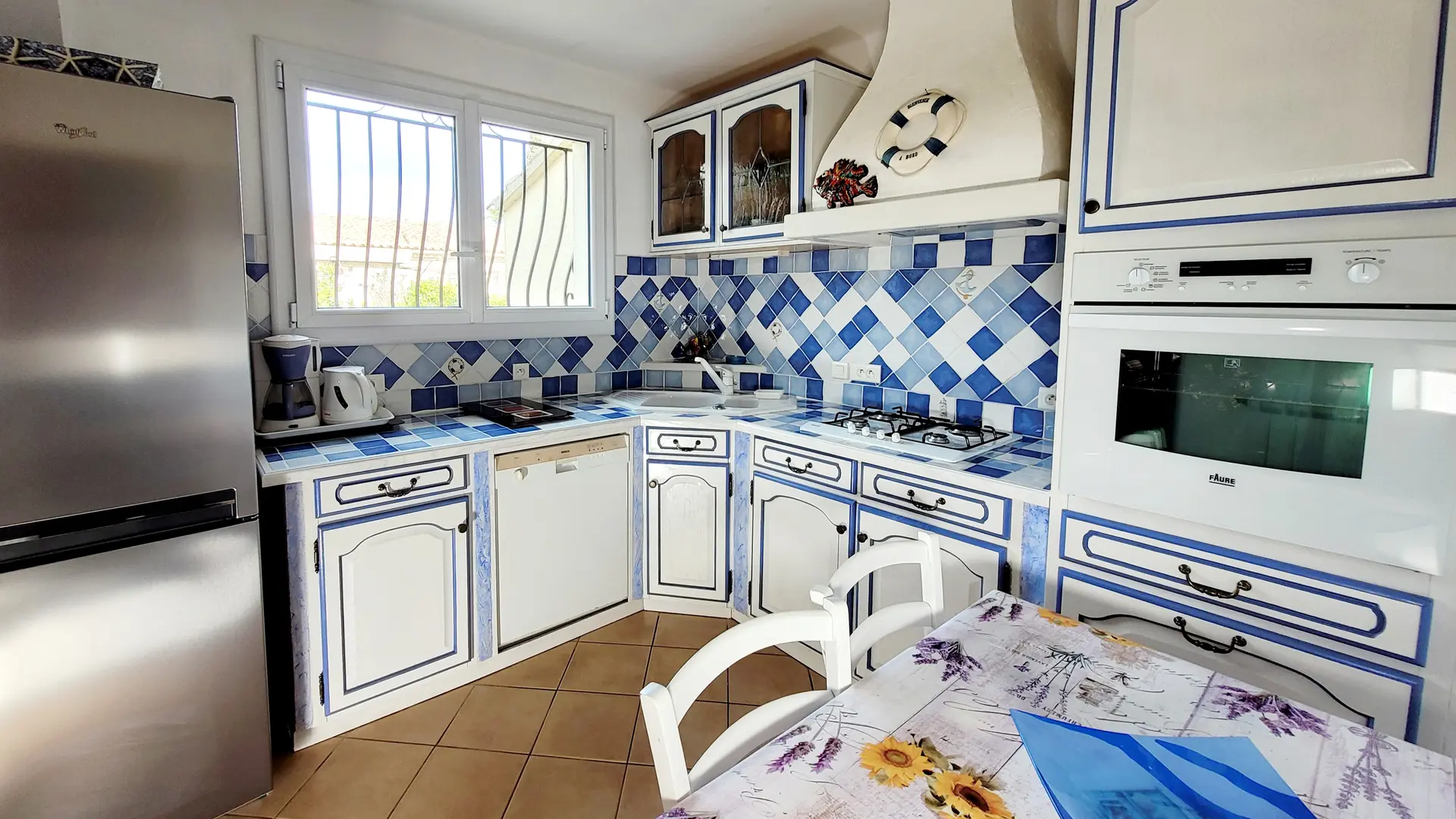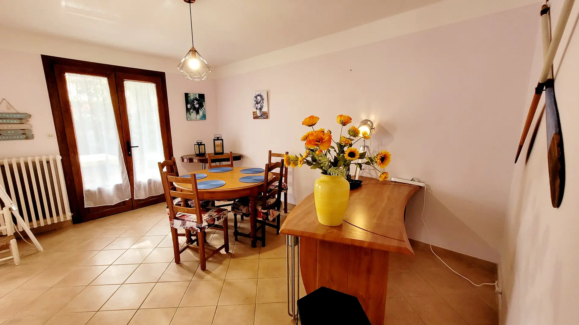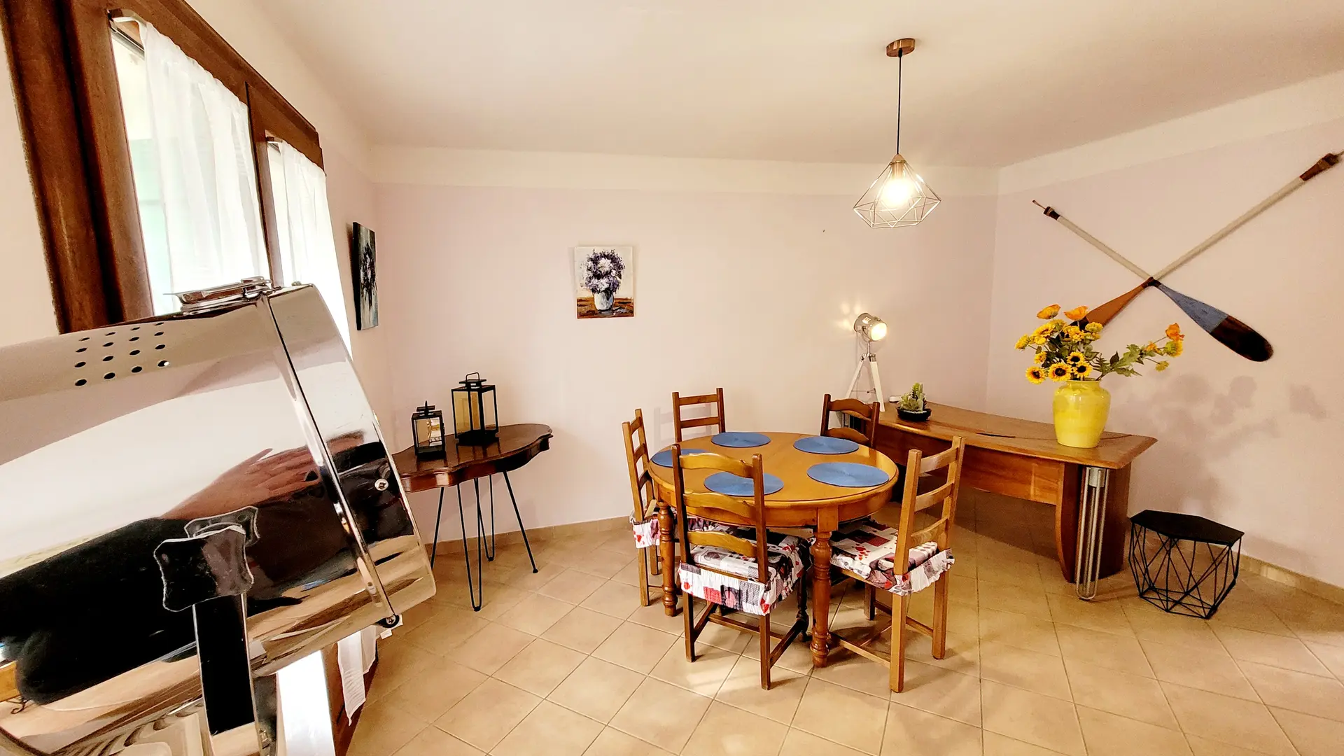 Au rez-de-chaussée, une cuisine équipée d'un lave-linge et d'un lave-vaisselle, une salle à manger, un salon avec télévision, wifi et un canapé convertible.