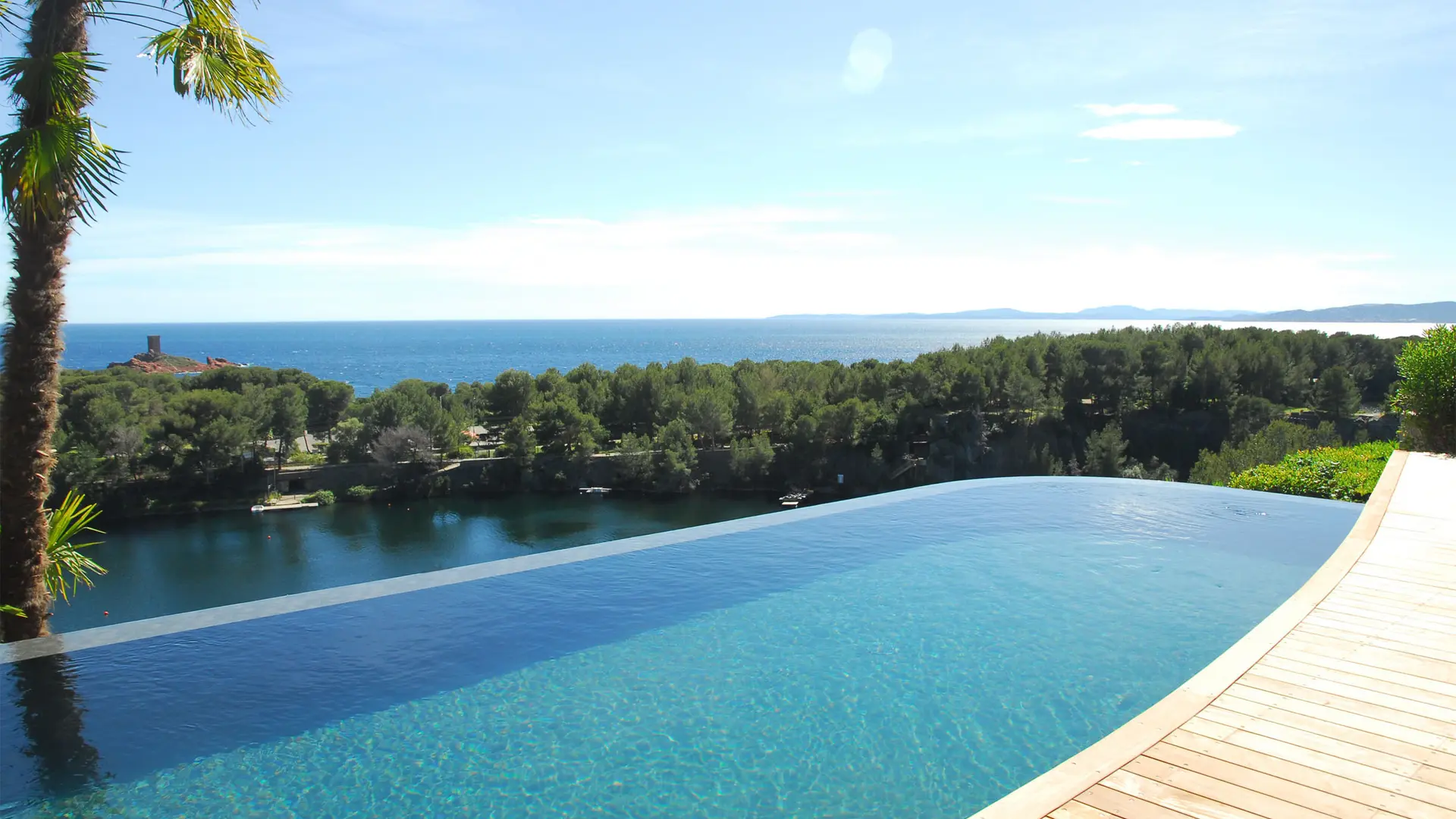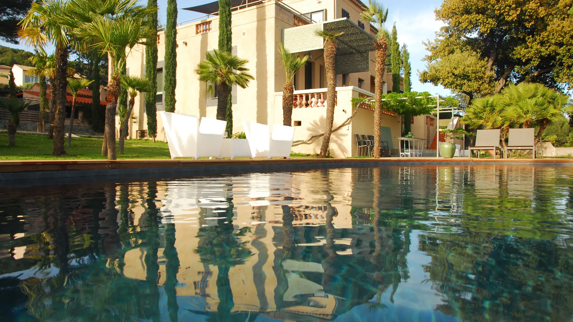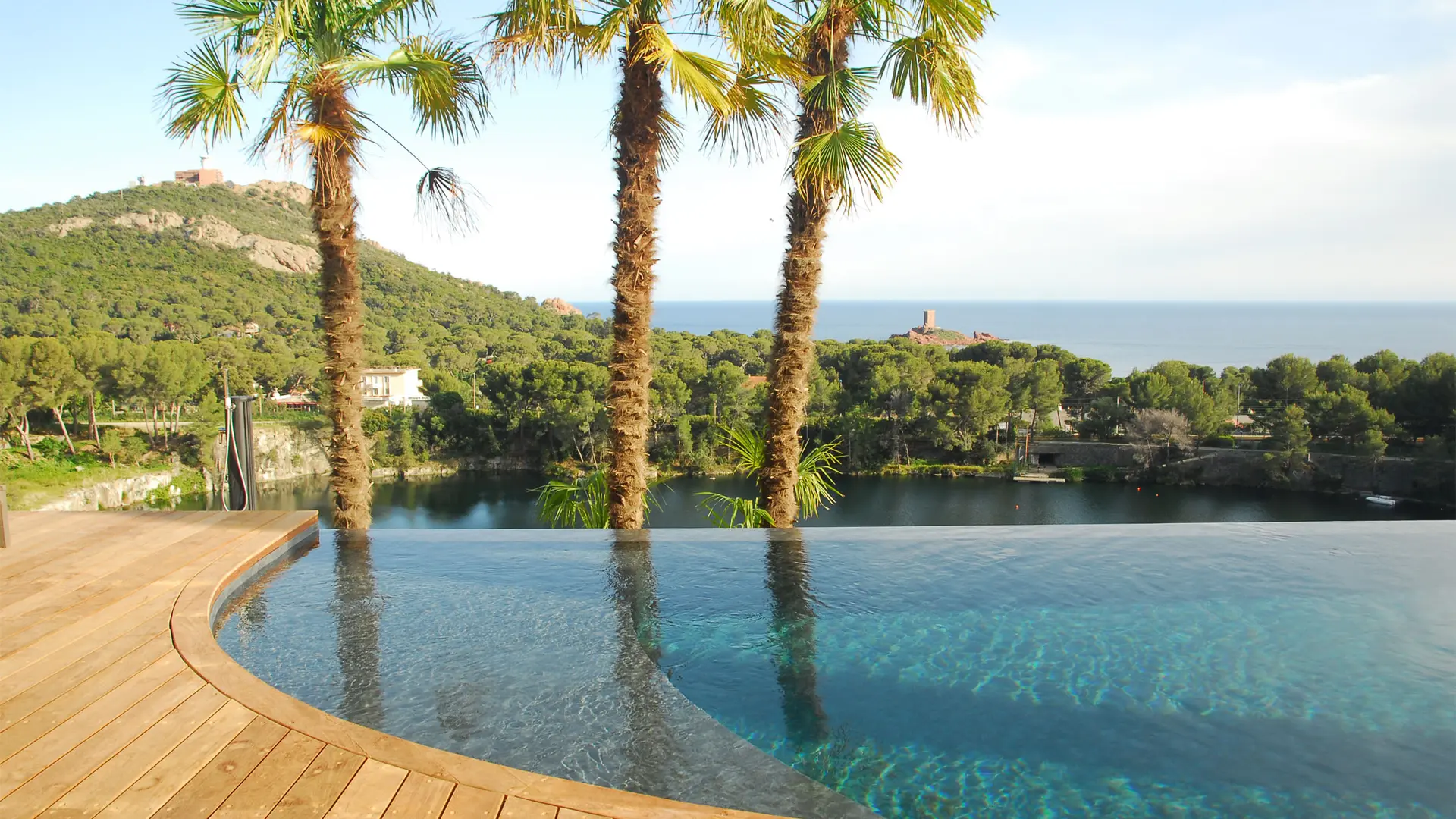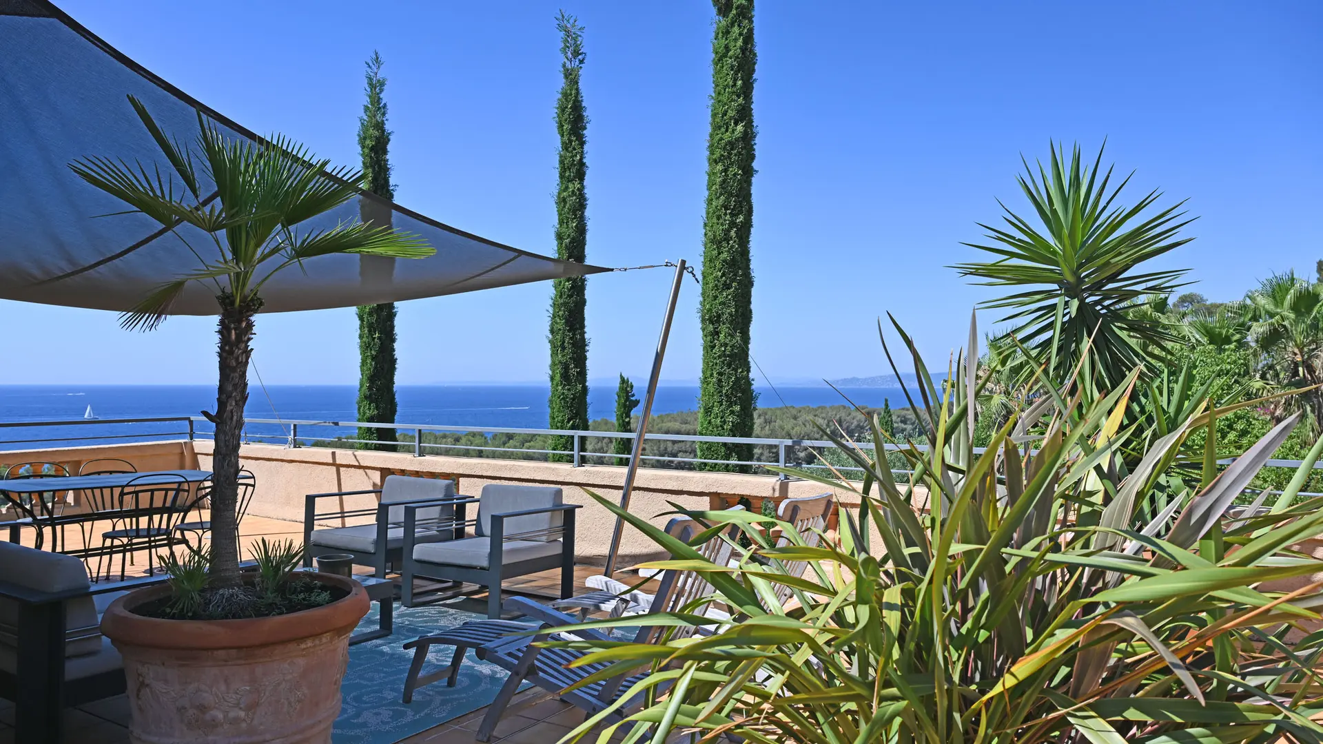 Face à l'Île d'or, la Villa Alfonsa vous offre une vue dominante sur la méditerranée. Dans le domaine privé, sur un parc arboré de 2500 m², à 350m des plages. Villa 1900 liée au site historique des anciennes carrières de Porphyre du Dramont.