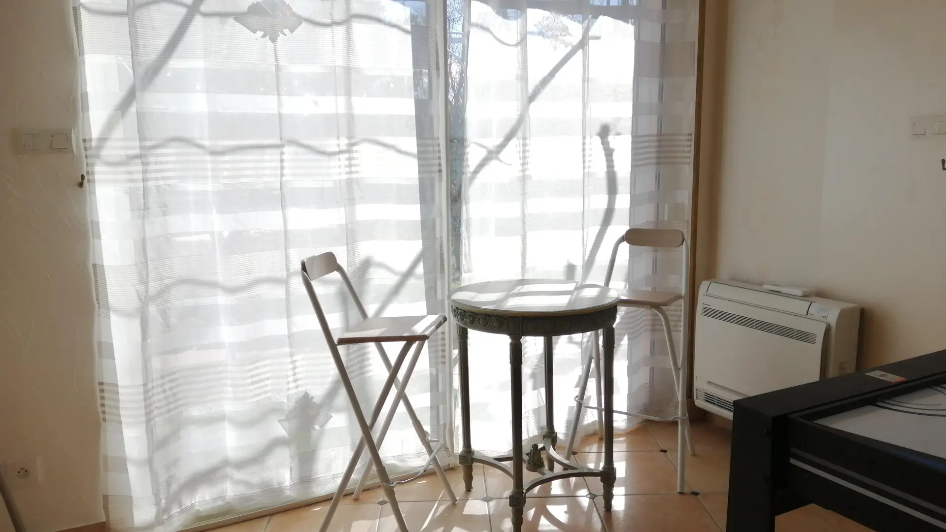 1 coin nuit climatisé avec lit queen size à l'arrière du salon, box internet