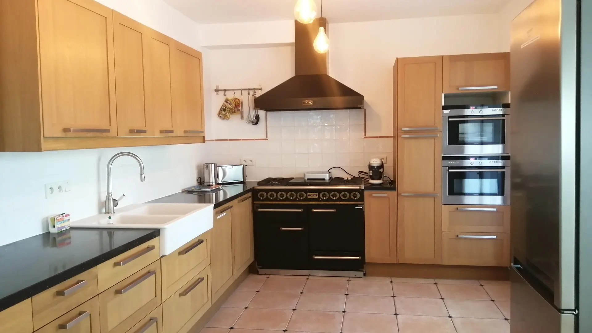 Equipement haut de gamme avec piano Falcon, four vapeur, four micro ondes multi fonctions, cafetière filtre, Tassimo, grille pain, bouilloire, lave vaisselle, Vaisselle, ustensiles.