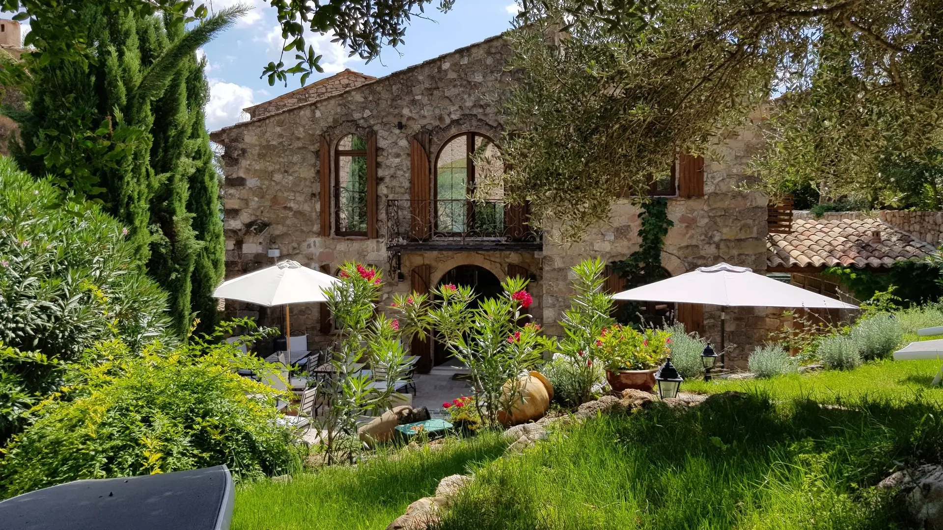 Dans la cour du jardin fleuri se trouve un coin repas où vous pourrez prendre votre petit-déjeuner en été.