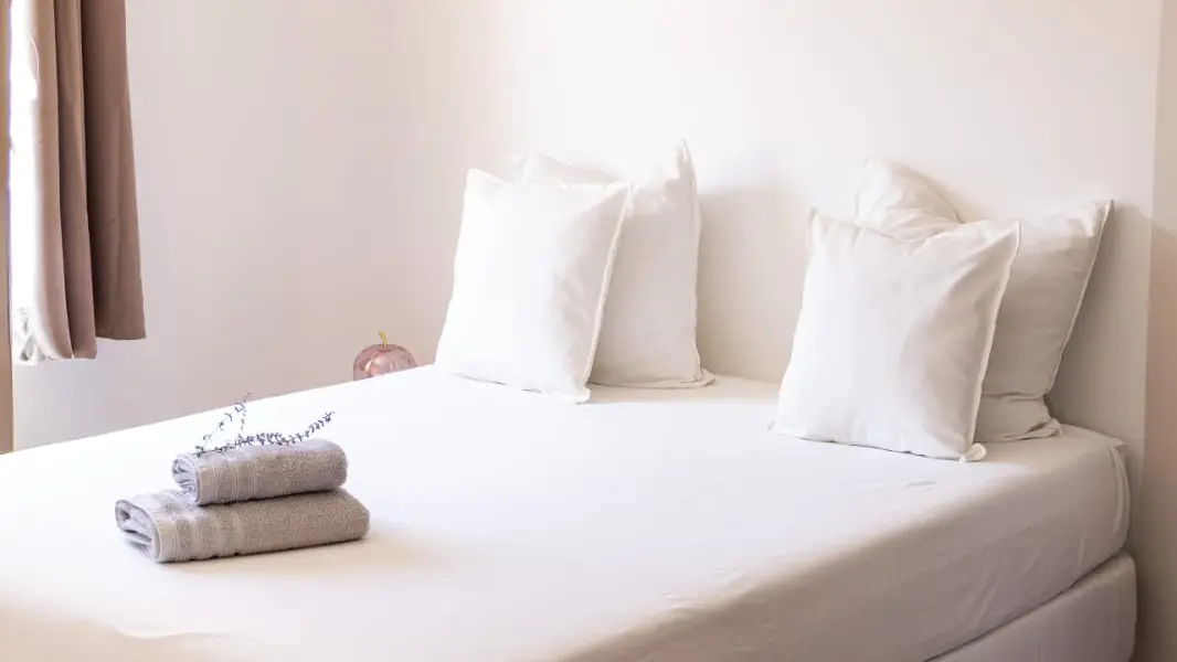 La villa dispose de trois chambres spacieuses, équipées de literie haut de gamme et de lits Queen Size. L’une d’elles est une suite parentale dotée de sa propre douche, offrant un espace intime et lumineux. Les invités bénéficient également d’une salle de bain avec baignoire et WC, ainsi que d’un WC séparé, idéal pour plus de confort au quotidien.