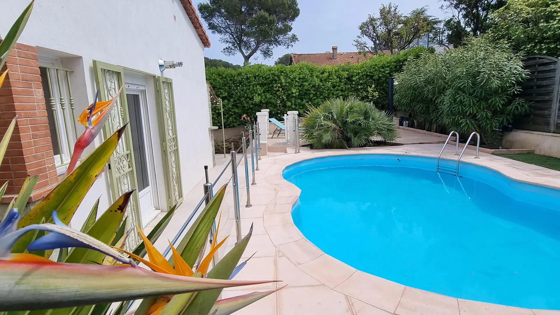 Villa meublée classée *** 6 - 8 personnes avec extérieurs et piscine en bord de mer accessible en 5 mn à pied. Le quartier en retrait de la circulation de la route côtière est