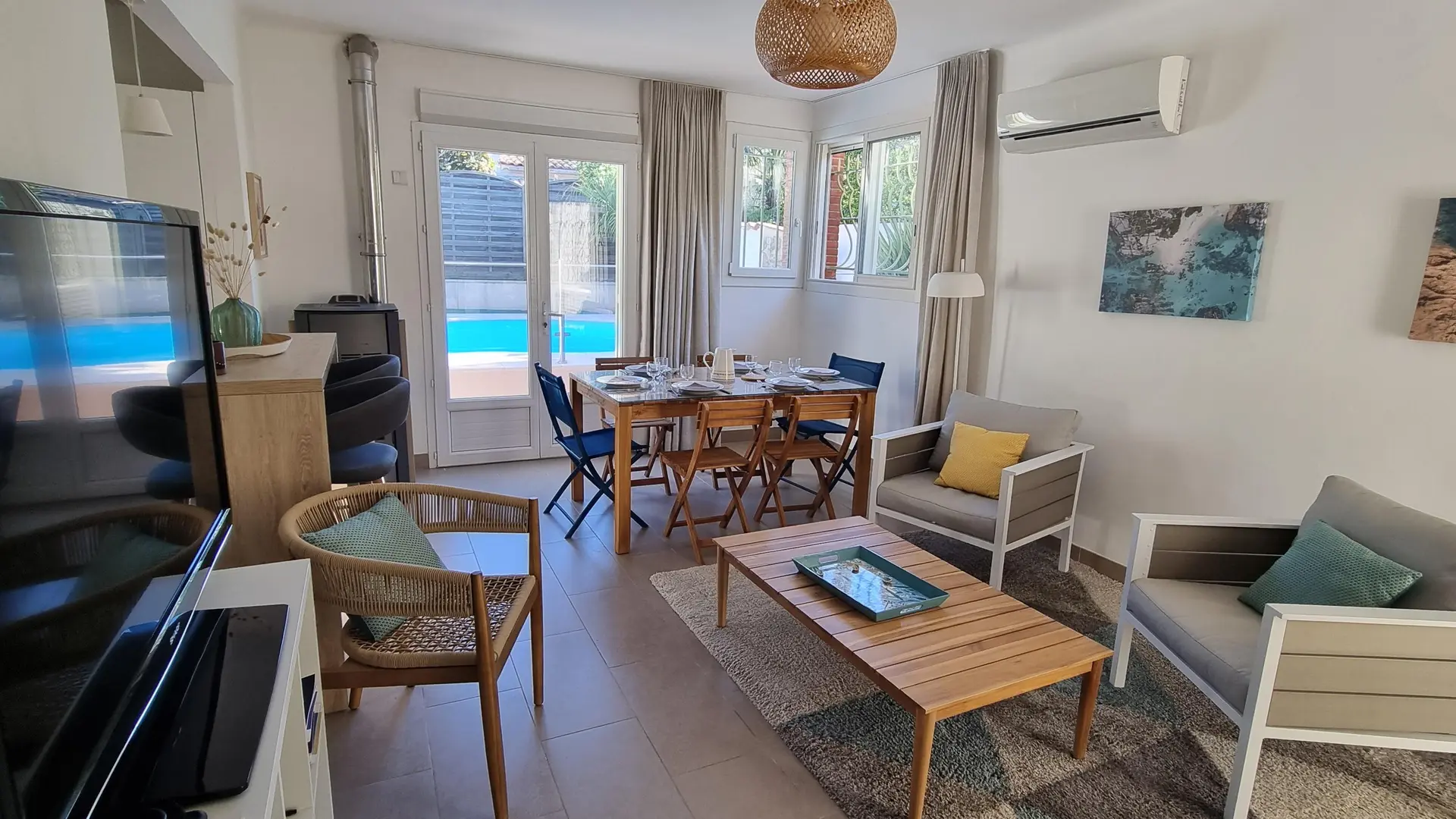 serviettes pour la piscine (drap de mer non fournis) ainsi que le ménage final de départ (à votre charge espaces cuisine, repas). arrhes 25 % et caution obligatoire 1200-1400 €. Cette villa a été entièrement rénovée et offre des prestations haut de gamme: piscine éclairée et protégée par barrière pour les enfants, bassin de 1,10 m de profondeur (7,50 mX3,50 m) et solarium; jardin privatif paysagé et fleuri de 450 m', terrasses, pergola, patios avec différents espaces pour passer de bons moments en famille. Fraîche et agréable en été, la villa dispose des équipements pour un séjour tout confort : climatisation, wifi, télévision, réfrigérateur-congélateur, four, plaque à induction, hotte, grille-pain, lave-vaisselle, machine à café moulu, micro-onde, plancha, sèche-