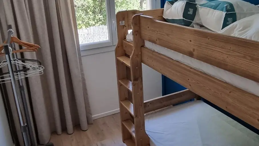 "enfants" avec 2 lits superposés 90X190 communicante avec la ch. parentale avec portant et rangement, une salle de bains de la maison principale douche à l'italienne, un