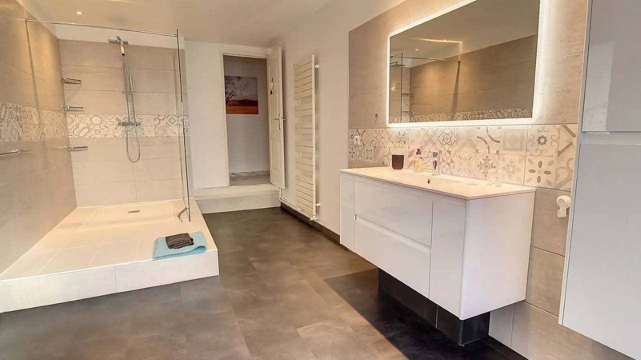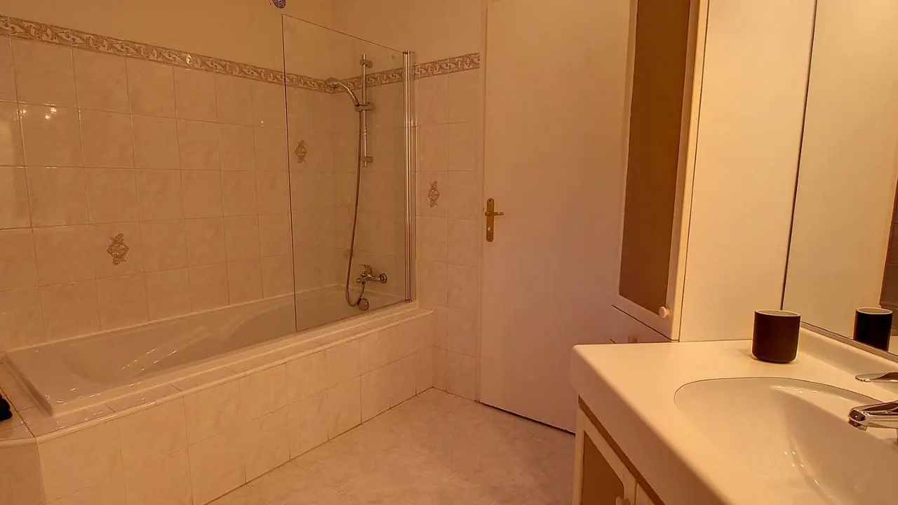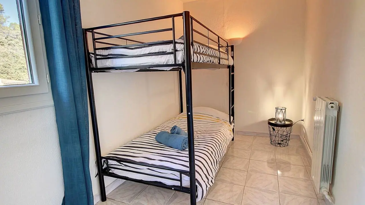 2 chambres au RDC avec lit double de 140x200 et 2 chambres en enfilade au 1er étage une avec lit double de 140x200 et une avec lits superposés de 90x190.