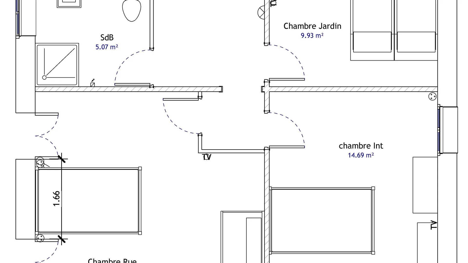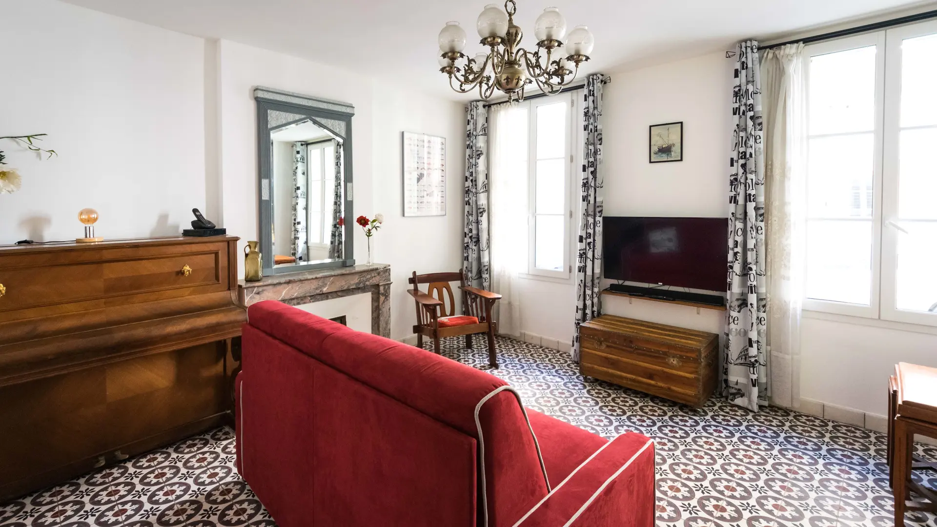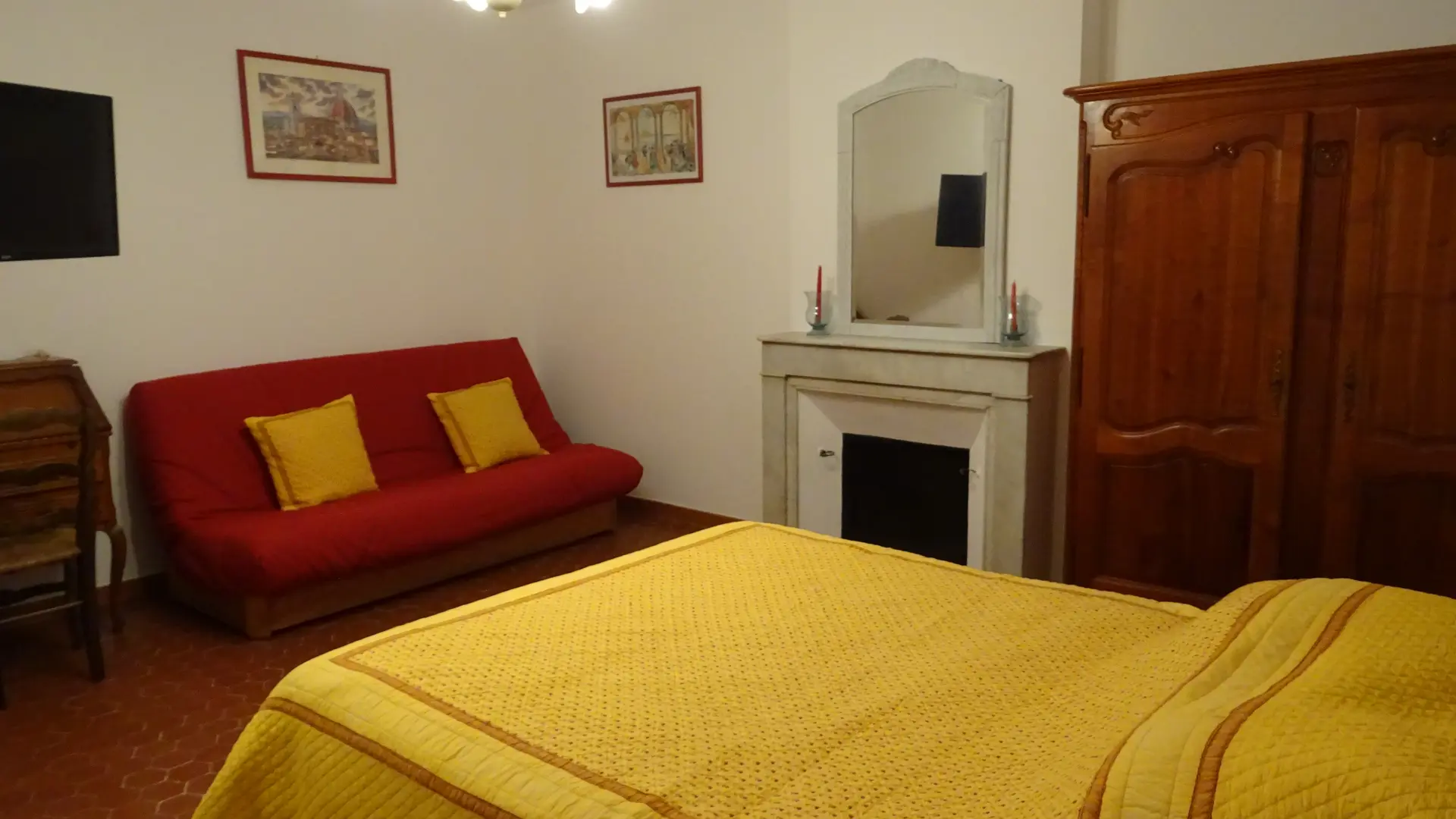 Salon de 20 m² avec canapé-lit type rapido neuf avec grand confort et écran plat