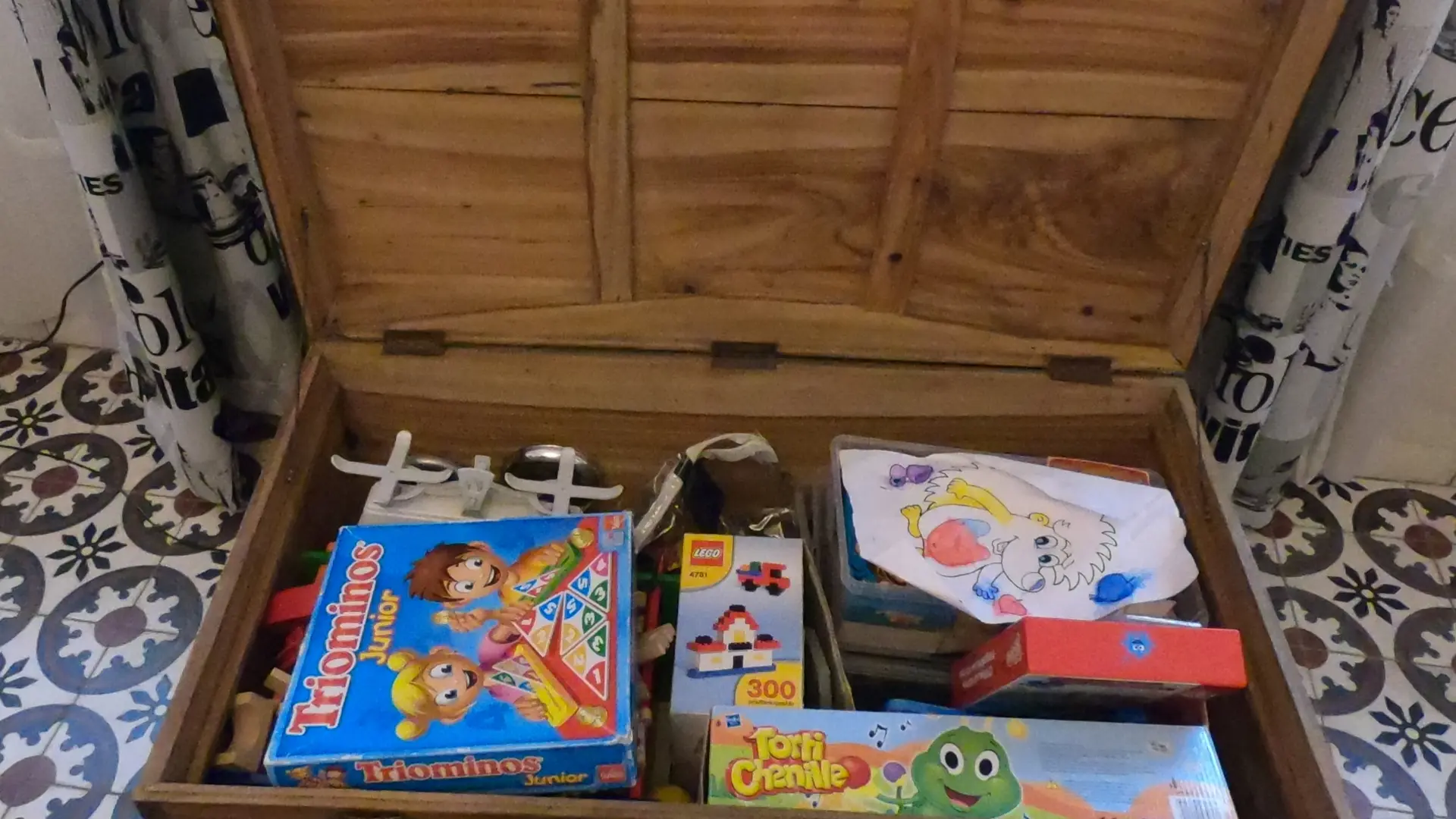 équipée de jeux de société, livres adultes et enfants, jeux de plage ...