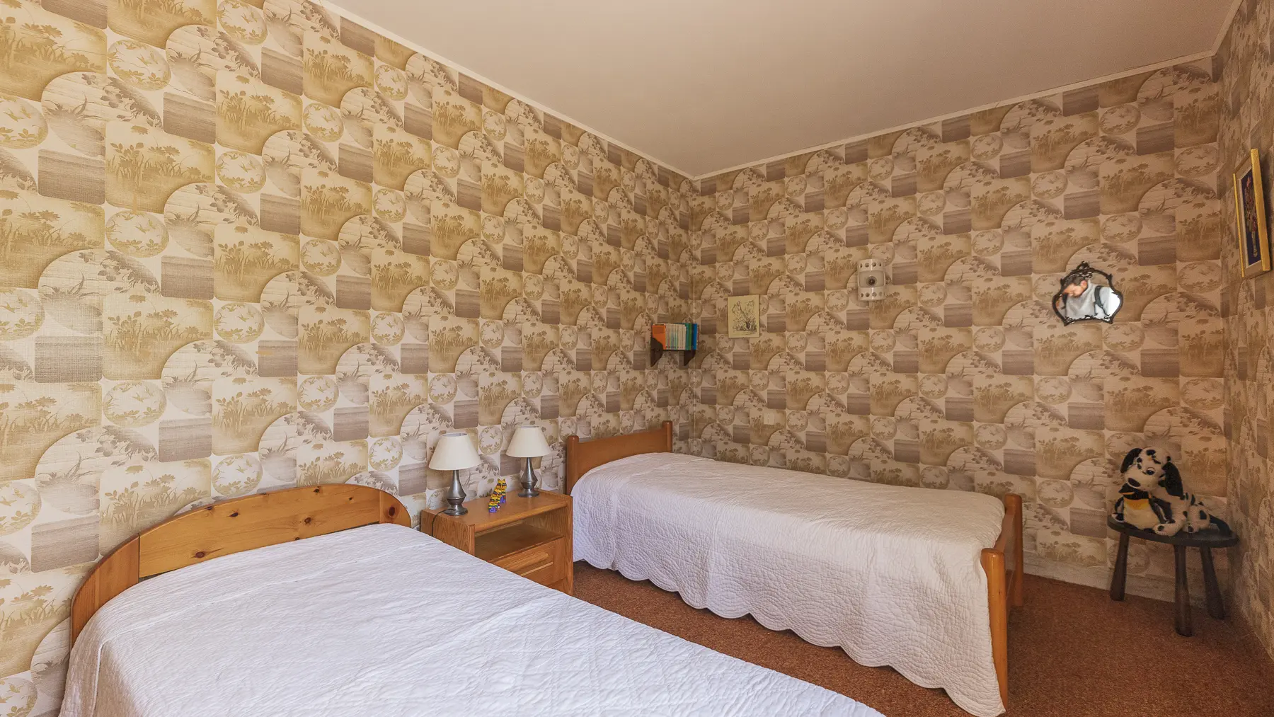 Séjour avec cheminée et cuisine séparée. 3 chambres : 2 chambres avec 1 lit 2 places et 1 chambre avec 2 lits 1 place. 1 salle de bain avec douche et lavabos 2 vasques, ainsi qu'un wc séparé.