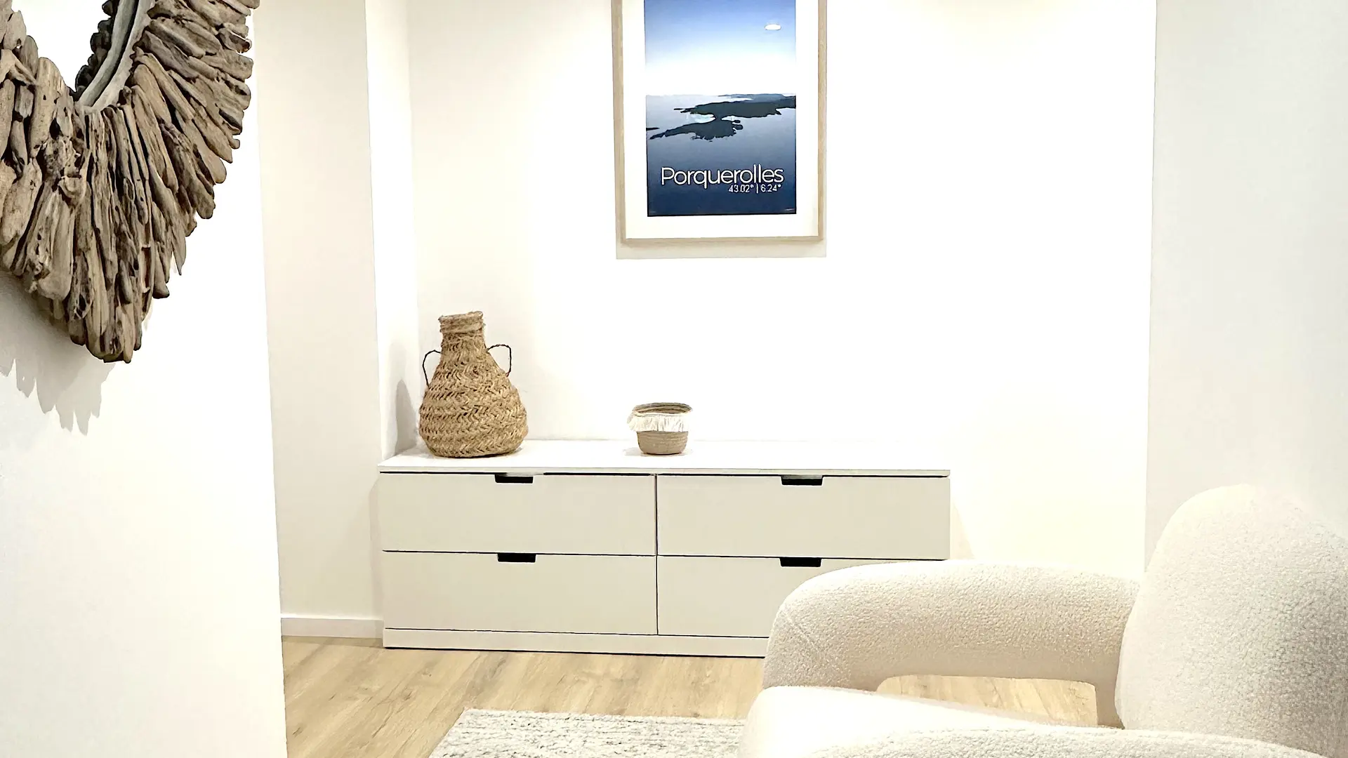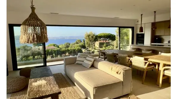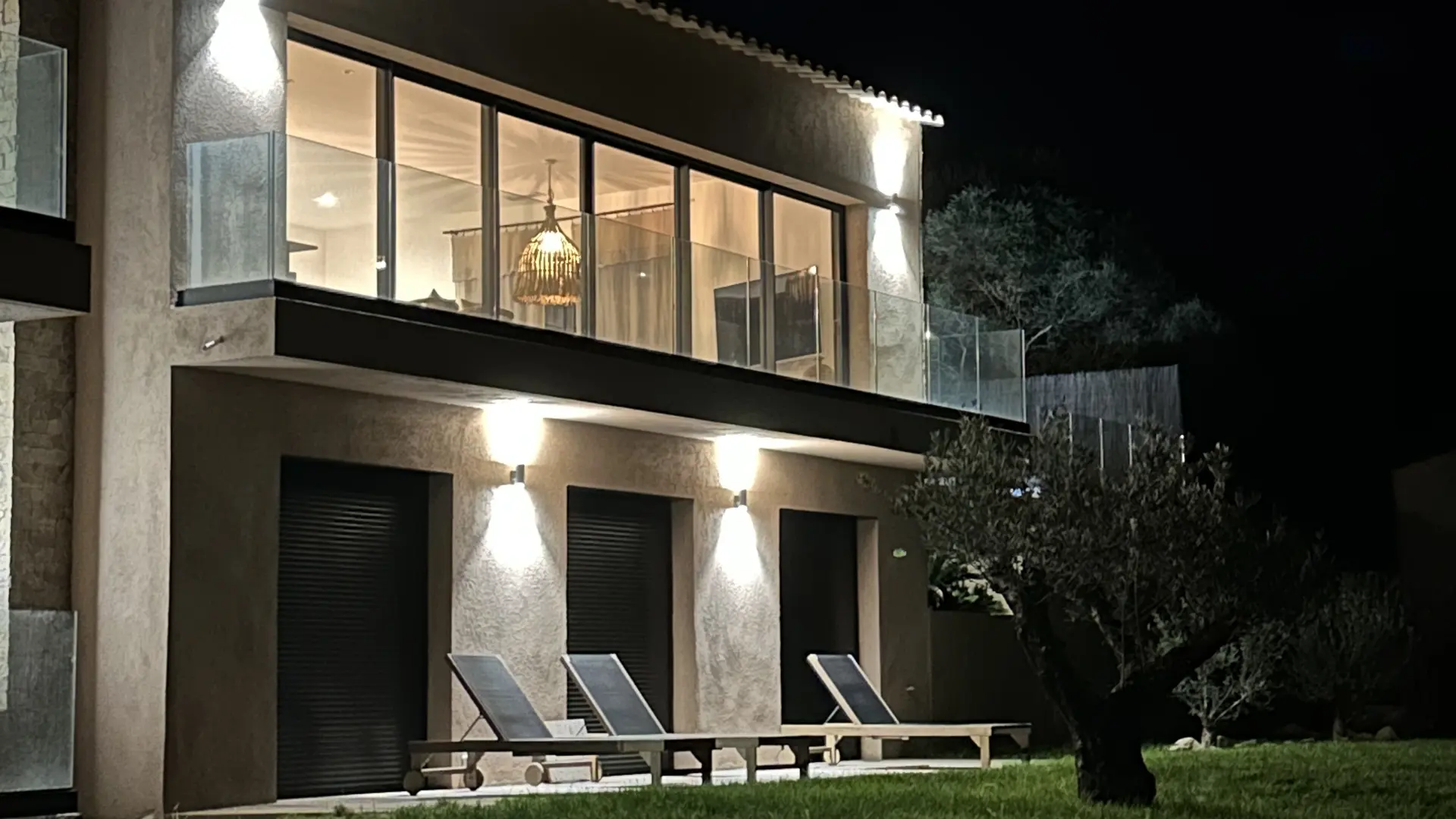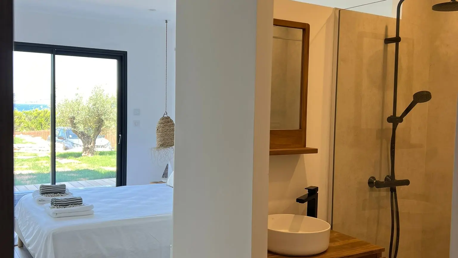 Construite en 2024 selon l’inspiration de ses propriétaires, la villa s’intègre harmonieusement dans son environnement naturel. Elle offre tout le confort moderne tout en respectant un esprit provençal, avec des teintes naturelles qui évoquent l’atmosphère de la presqu’île. Son jardin, planté d’oliviers centenaires ainsi que d’essences méditerranéennes et provençales, embaume les alentours avec des senteurs de thym, romarin et lavande. Un verger y trouve également sa place, avec des citronniers, orangers et un figuier, parsemé de figuiers de Barbarie.