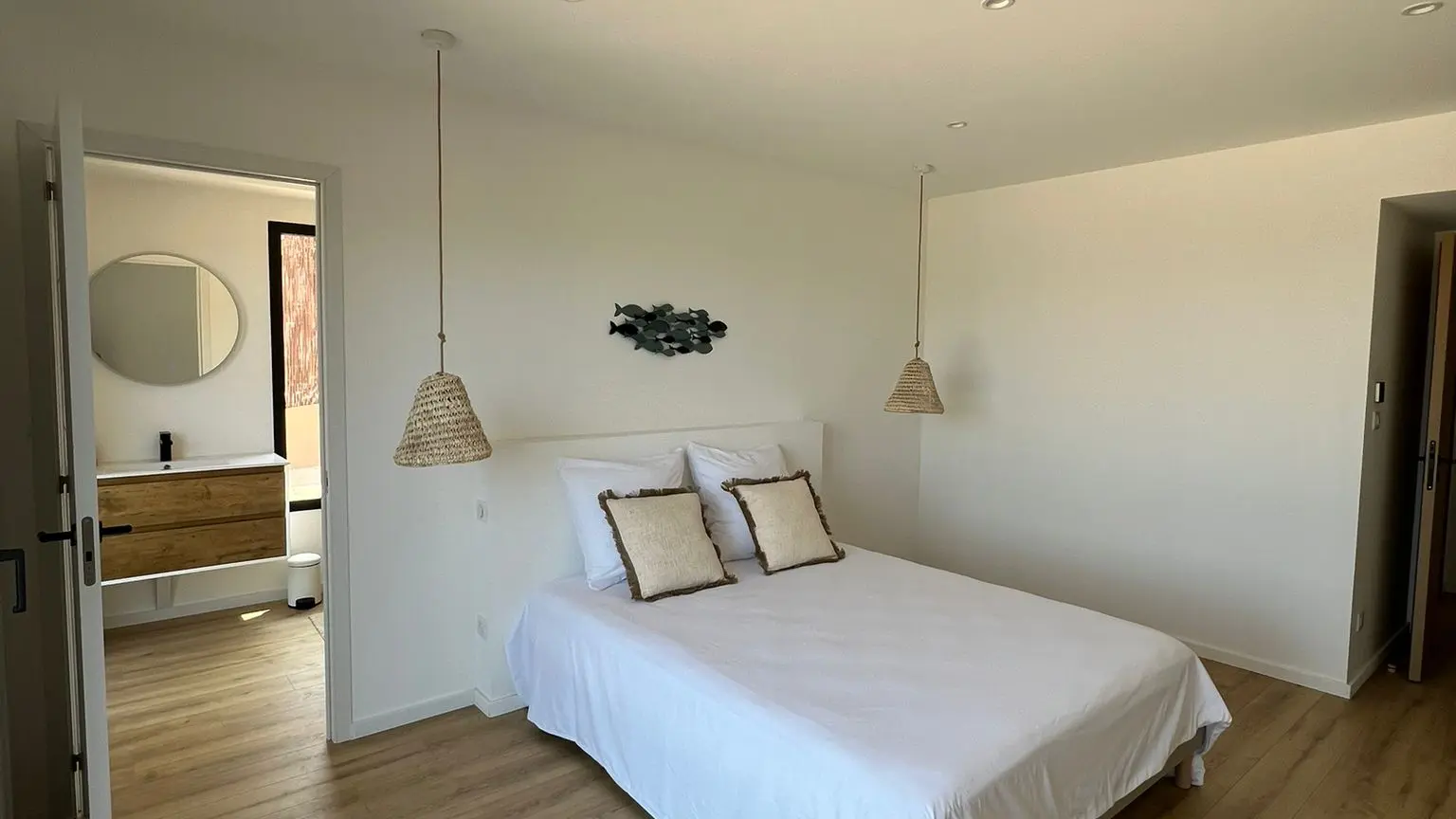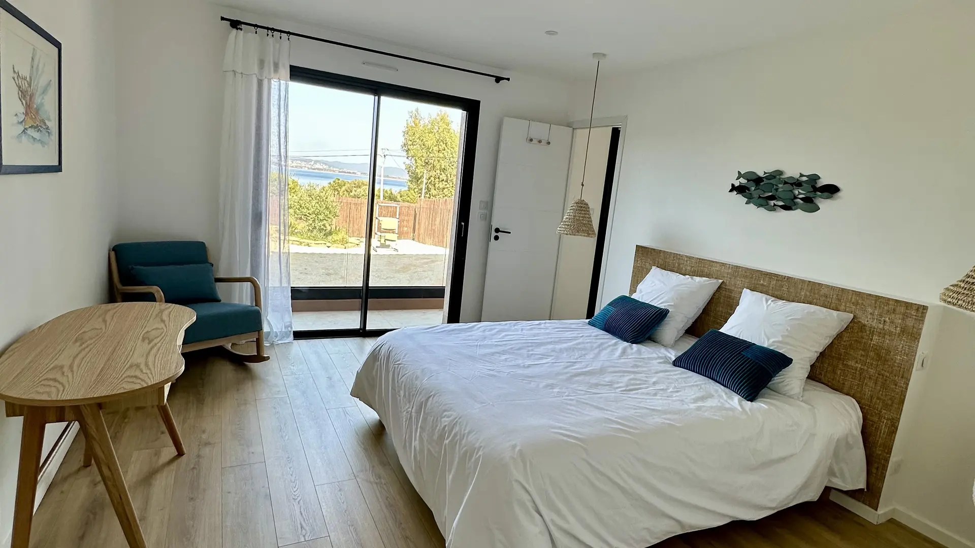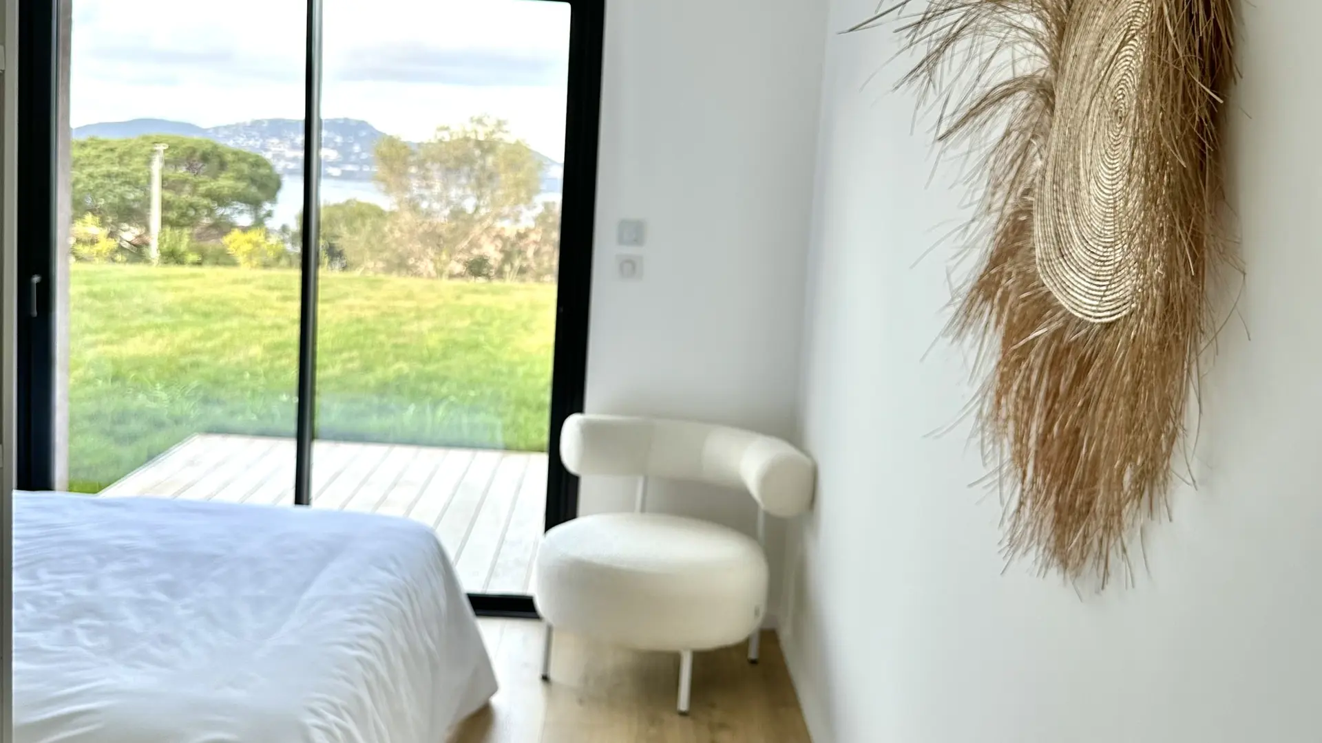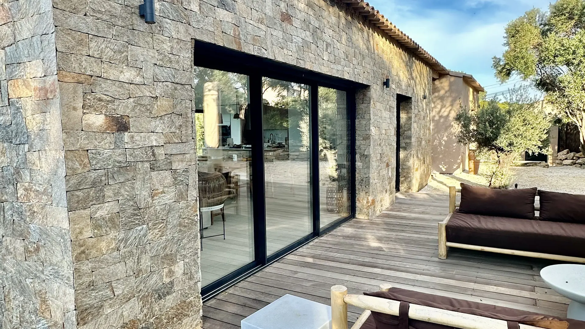 Construite en 2024 selon l’inspiration de ses propriétaires, la villa s’intègre harmonieusement dans son environnement naturel. Elle offre tout le confort moderne tout en respectant un esprit provençal, avec des teintes naturelles qui évoquent l’atmosphère de la presqu’île. Son jardin, planté d’oliviers centenaires ainsi que d’essences méditerranéennes et provençales, embaume les alentours avec des senteurs de thym, romarin et lavande. Un verger y trouve également sa place, avec des citronniers, orangers et un figuier, parsemé de figuiers de Barbarie.