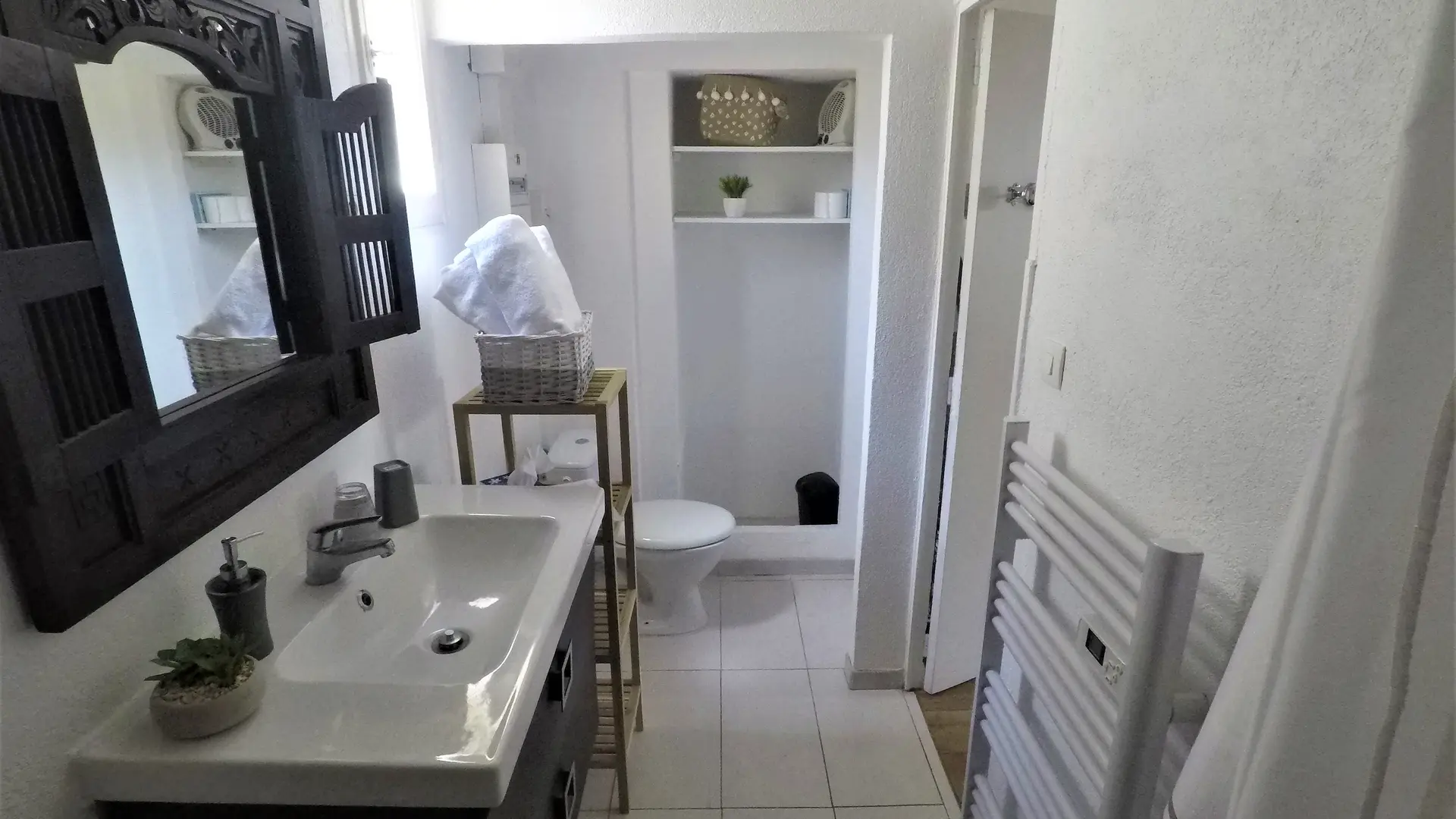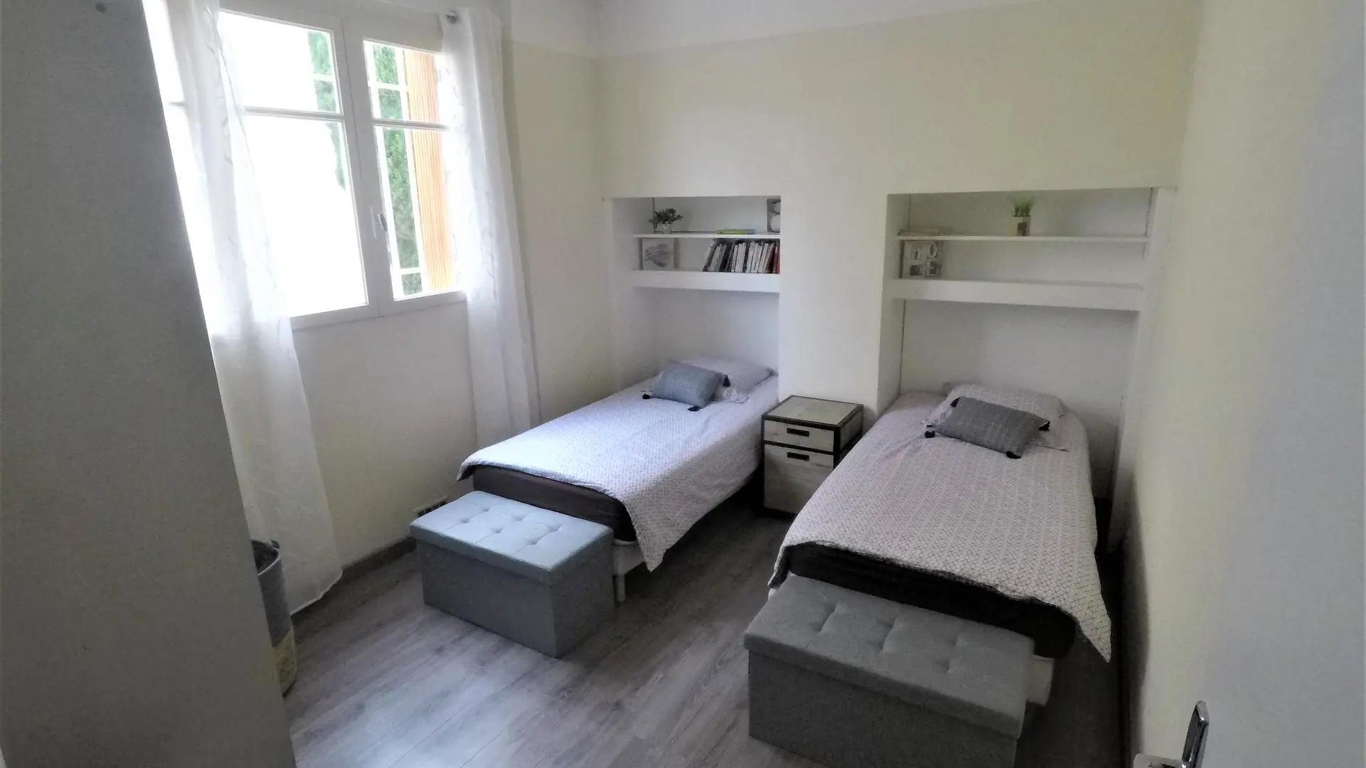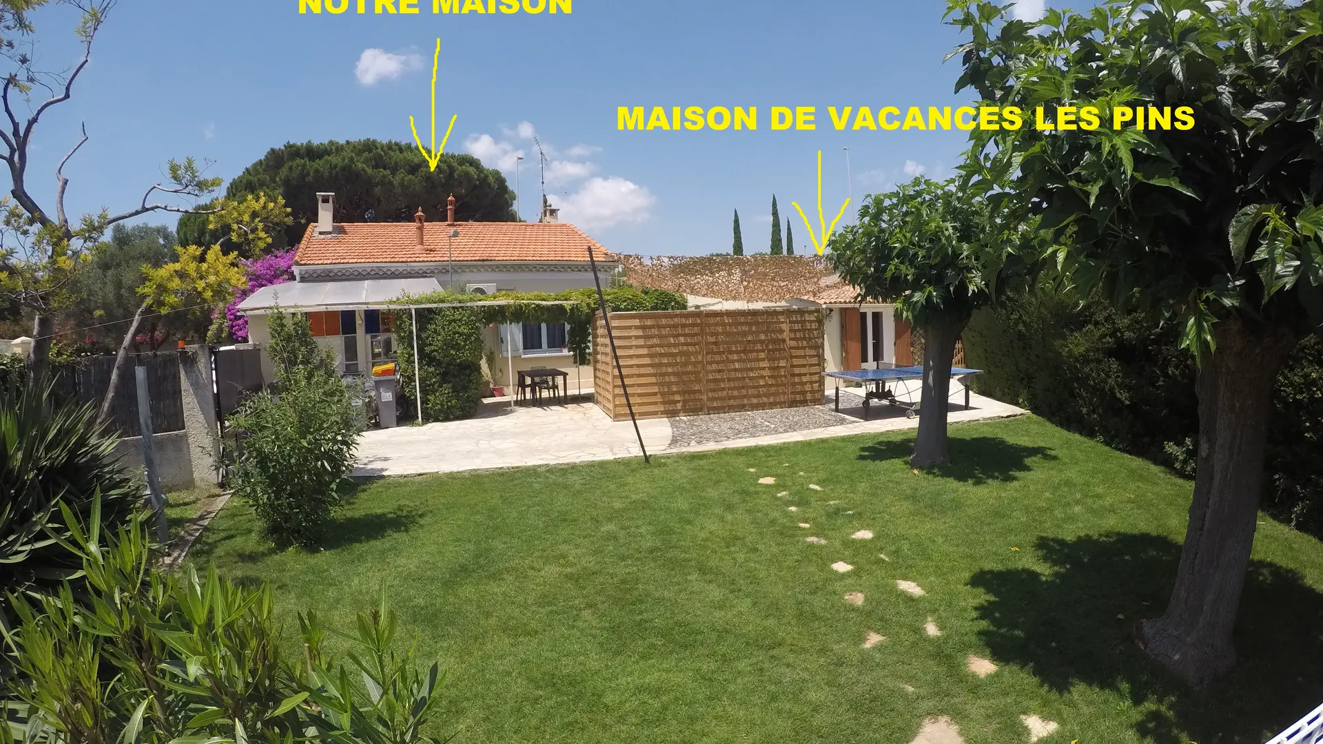 IL Y A 2 MAISONS SUR LE MEME TERRAIN (voir photo) NOUS SOMMES UN COUPLE 40/50 ans QUI RESIDONS DANS CELLE AVEC LE TOIT EN TUILES à gauche sur la photo ,la maison en location est à droite avec le toit terrasse, piscine semi privative , nous serions heureux de vous accueillir dans ce bien familial.