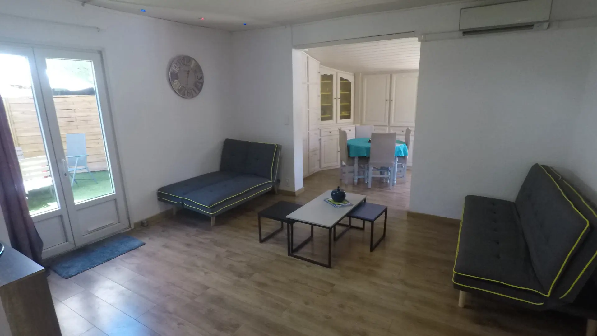 SALON: 2 canapés , écran plat 107 cm canal+ et toutes les chaines étrangères, wifi gratuit illimité, climatisation réversible