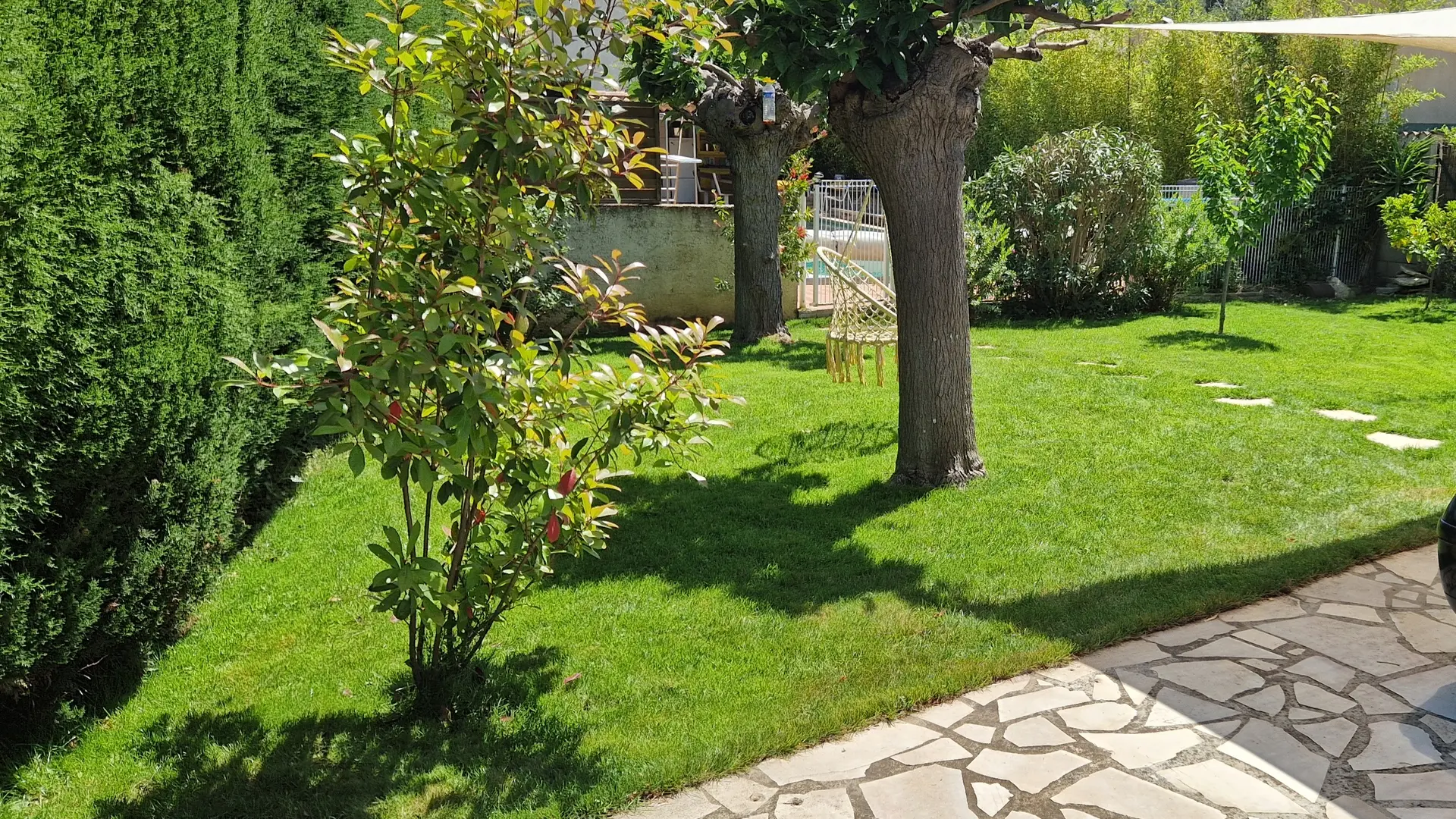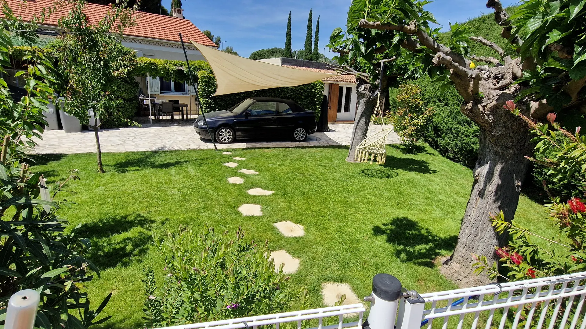 Possède un jardin de 1000 m2 entièrement clôturé, avec un portail automatique