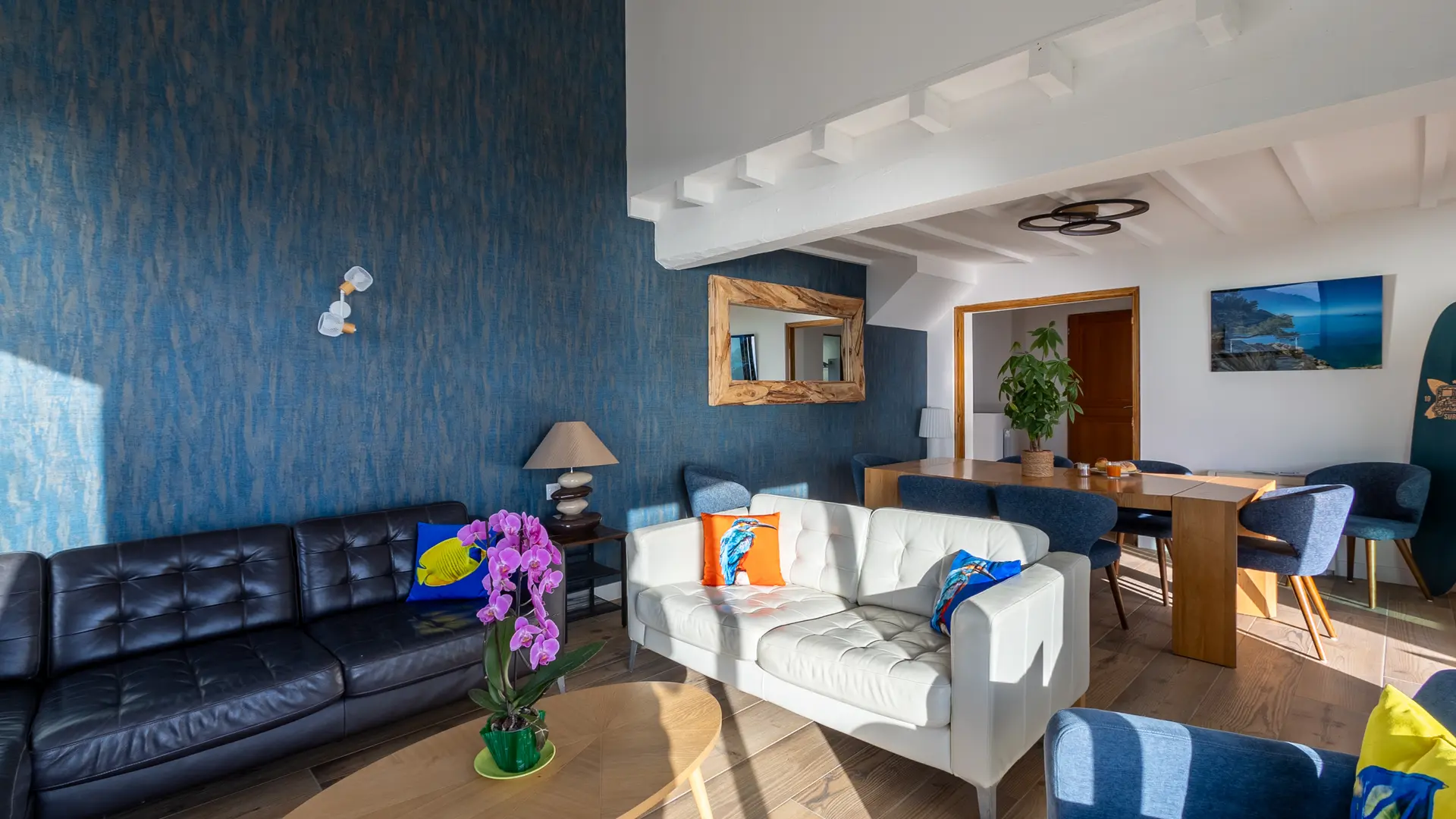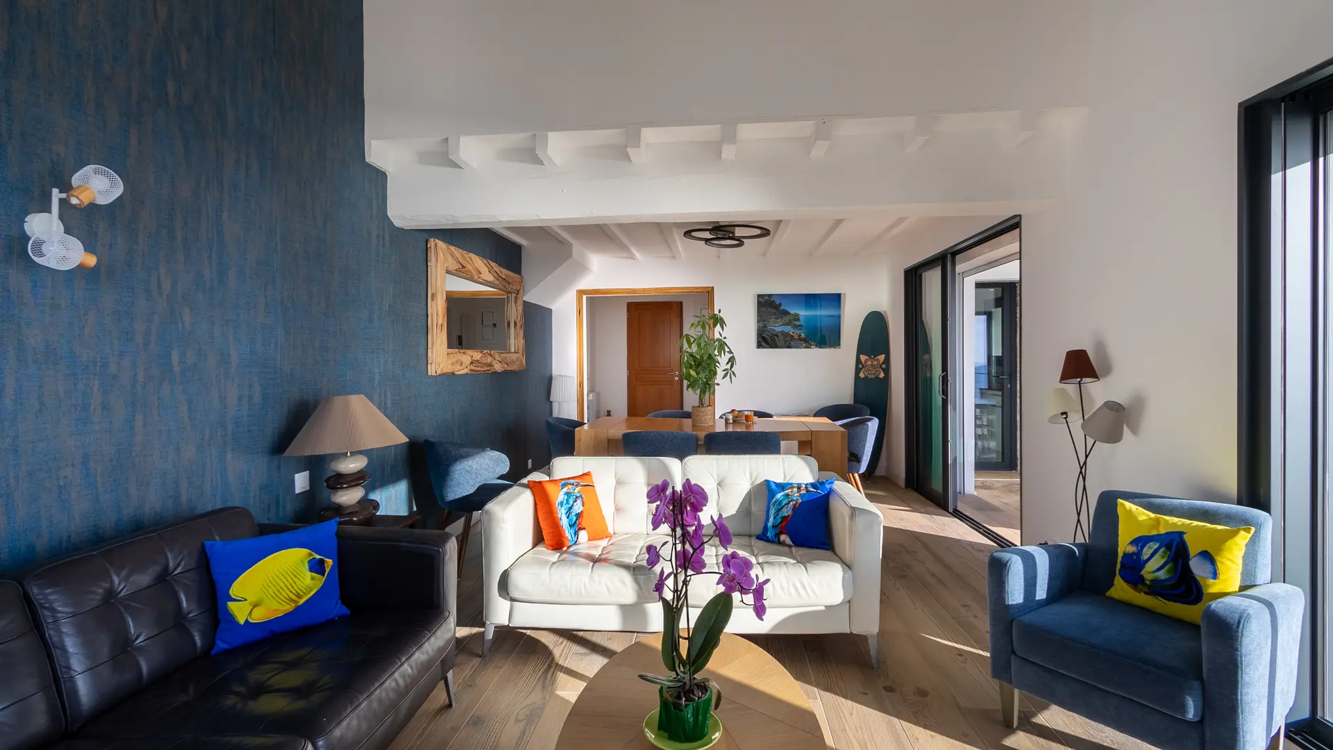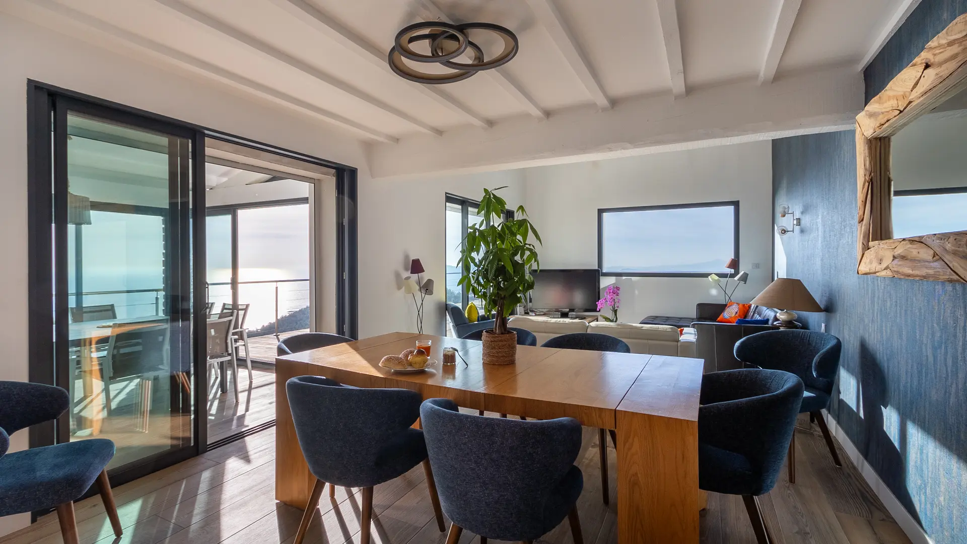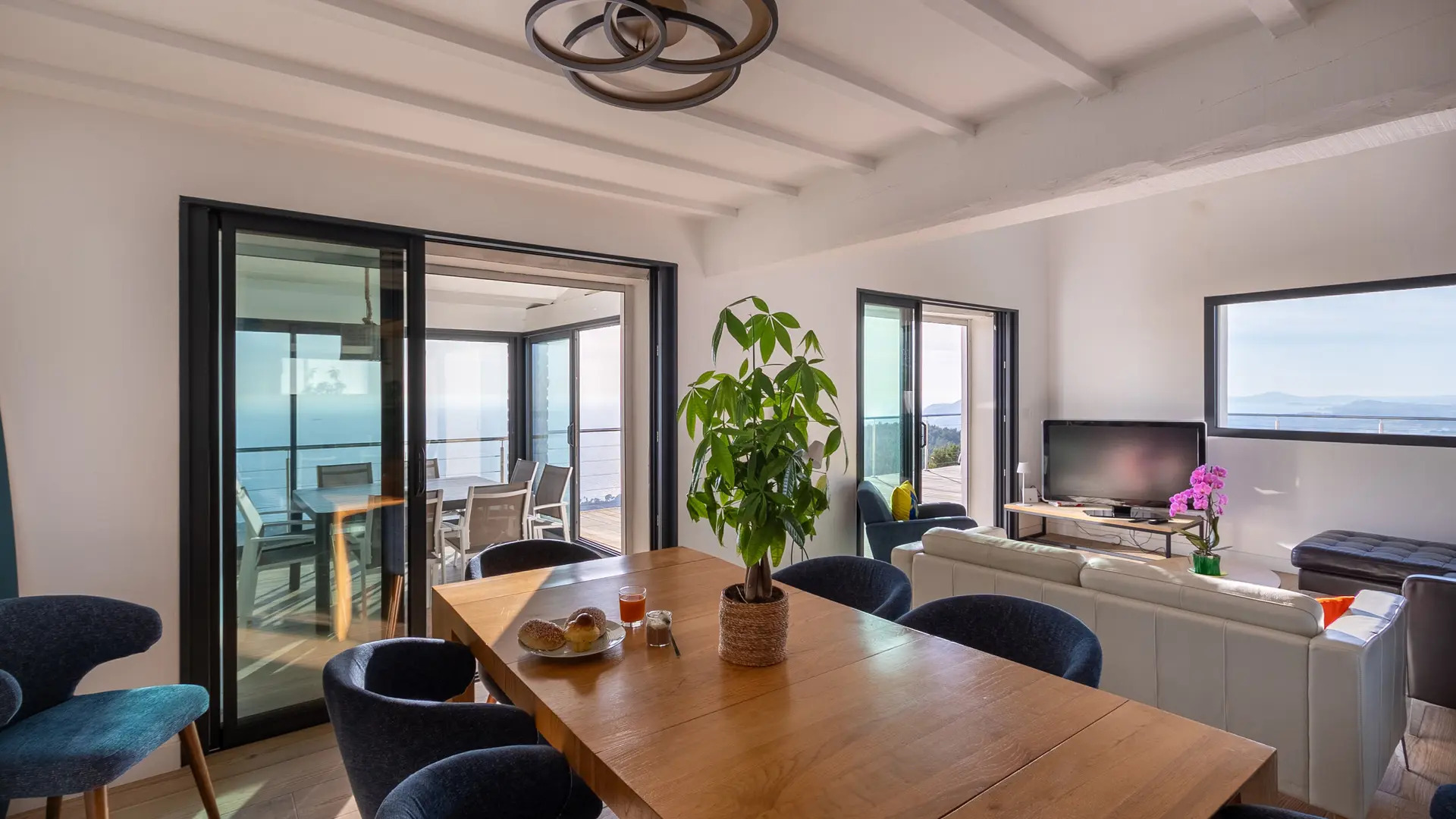 • Un séjour climatisé avec baie vitrée dominant la mer donnant sur une terrasse de 120m2