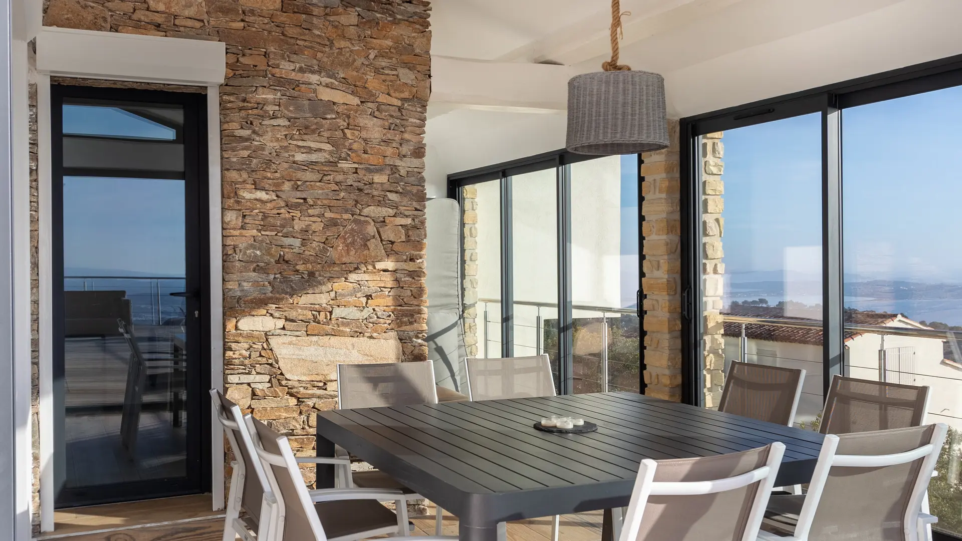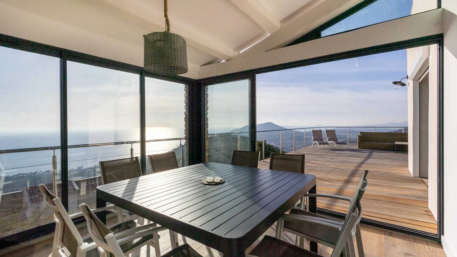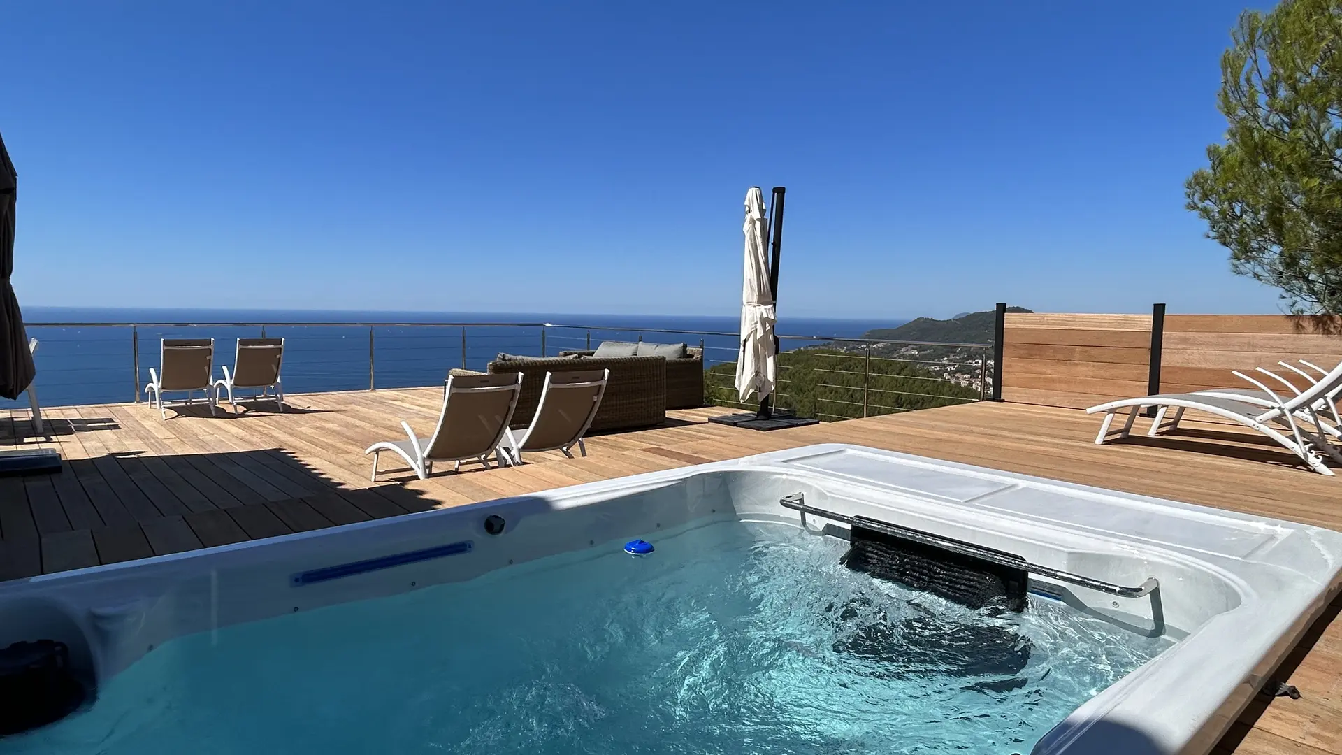 Location d'une Villa - 8 Personnes – séjour climatisé et verrière avec vue mer panoramique à plus de 180 °- 4 chambres - 2 salles d'eau - Wifi & climatisation – bassin de nage – exposition Sud-Ouest – terrain clos