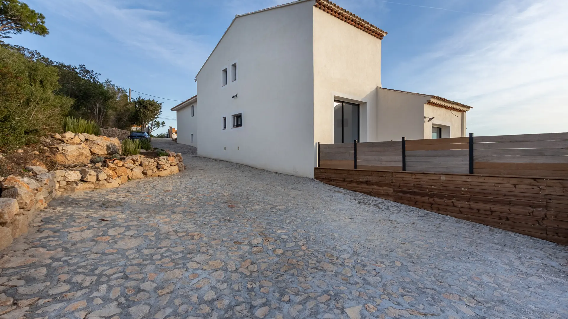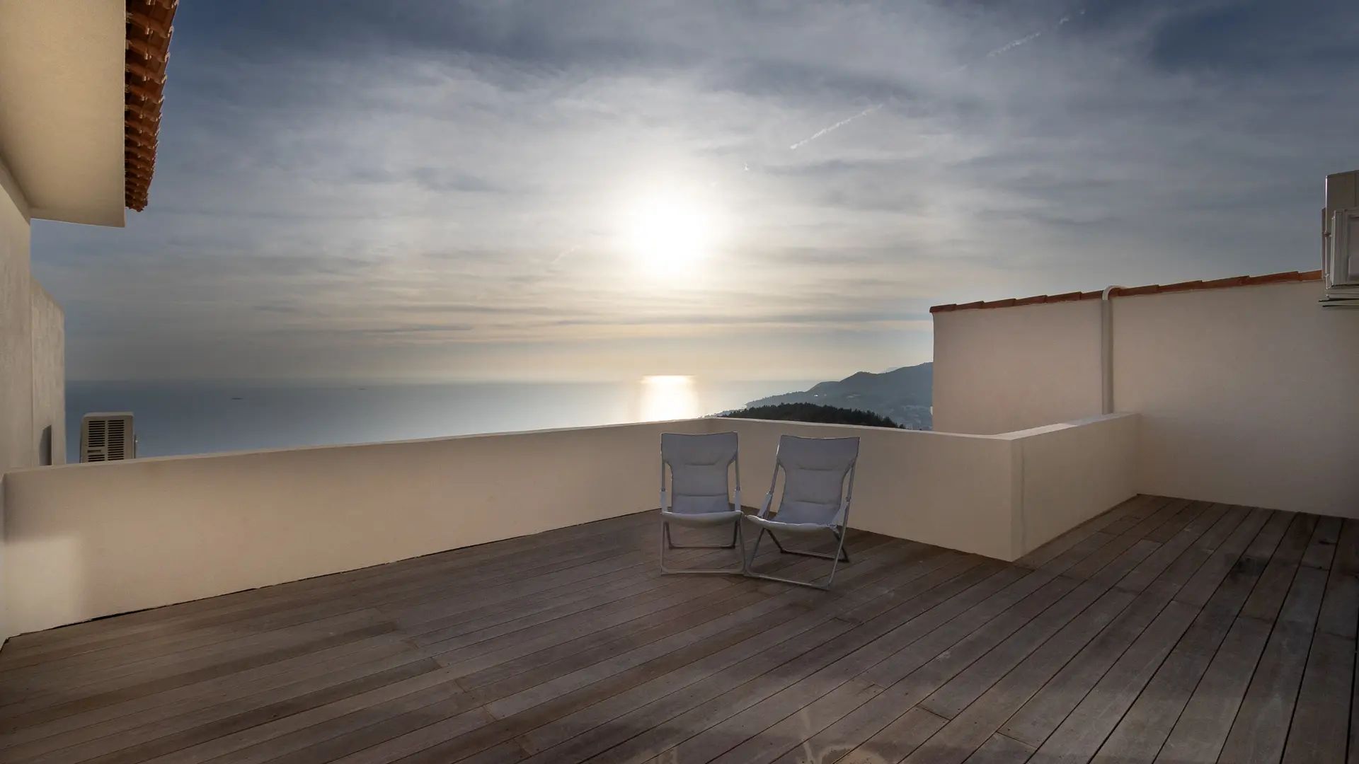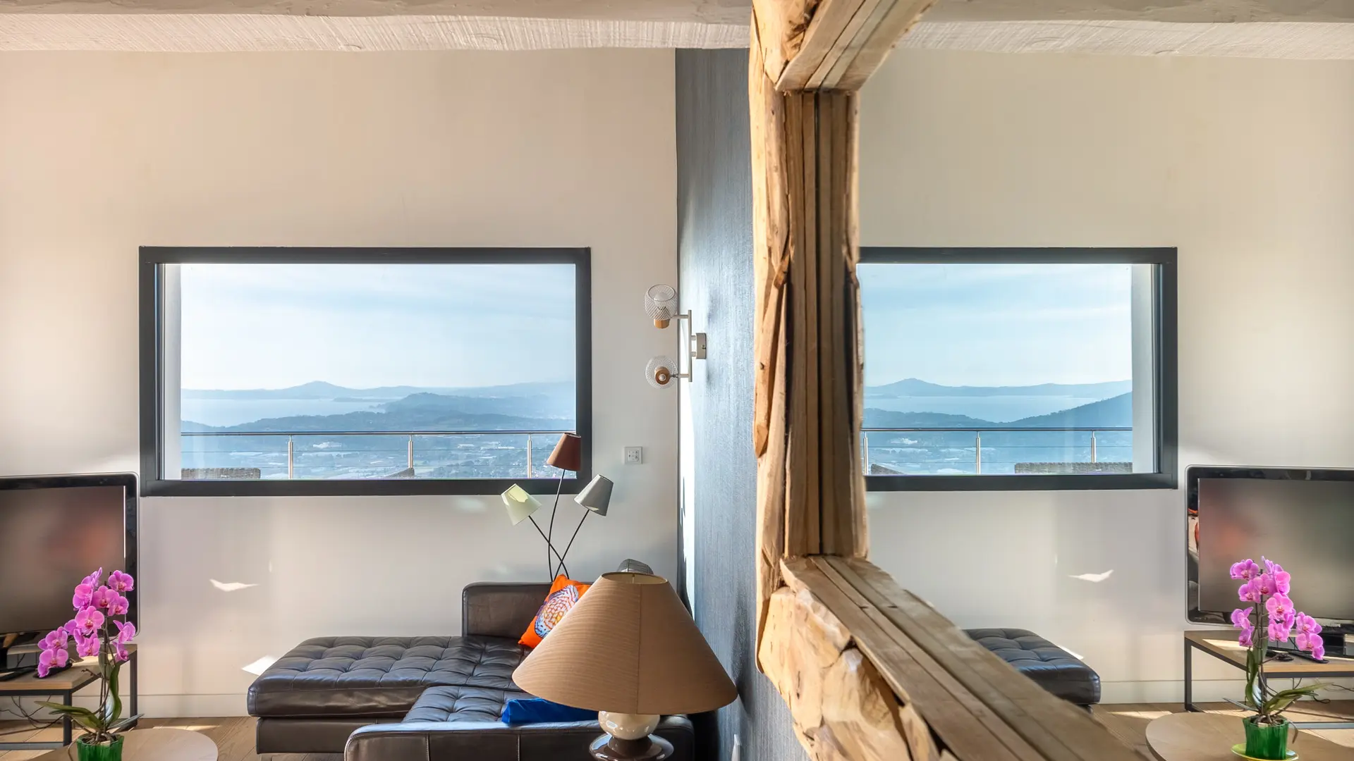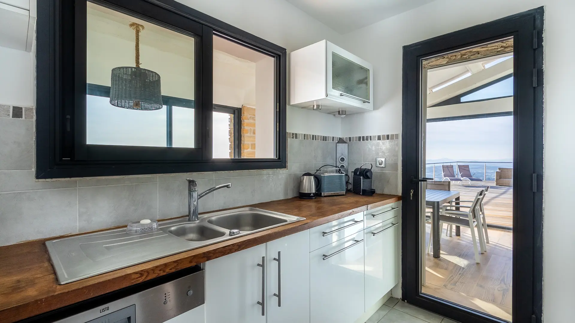 Vue réellement unique accentuée par la création d’une terrasse suspendue de 120m2 (une vue mer à perte de vue comme un roof top au milieu de nulle part !).
