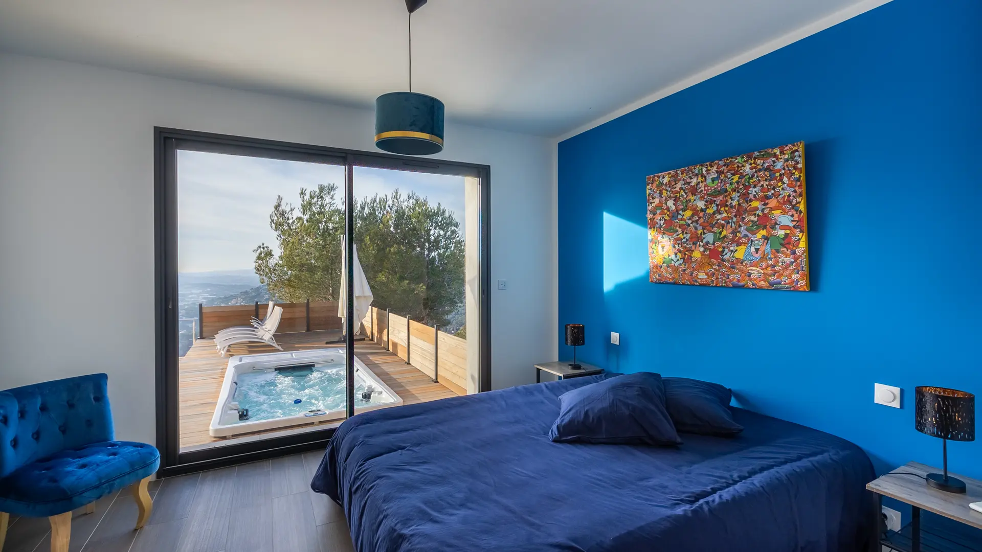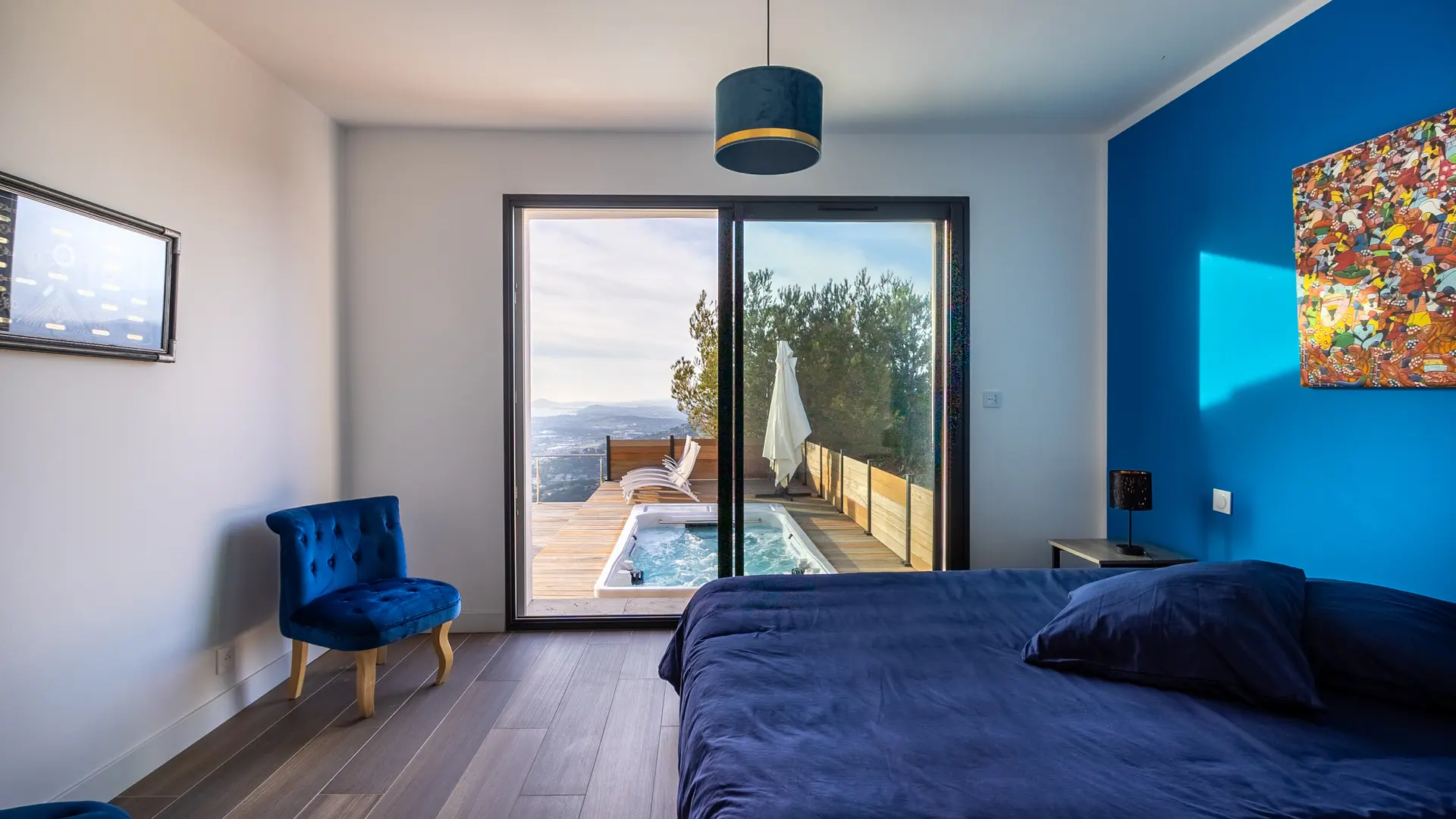 La villa est située sur le domaine privé de la colline La Californie et dans un clos avec deux villas dans un espace très calme et sans aucun vis-à-vis.