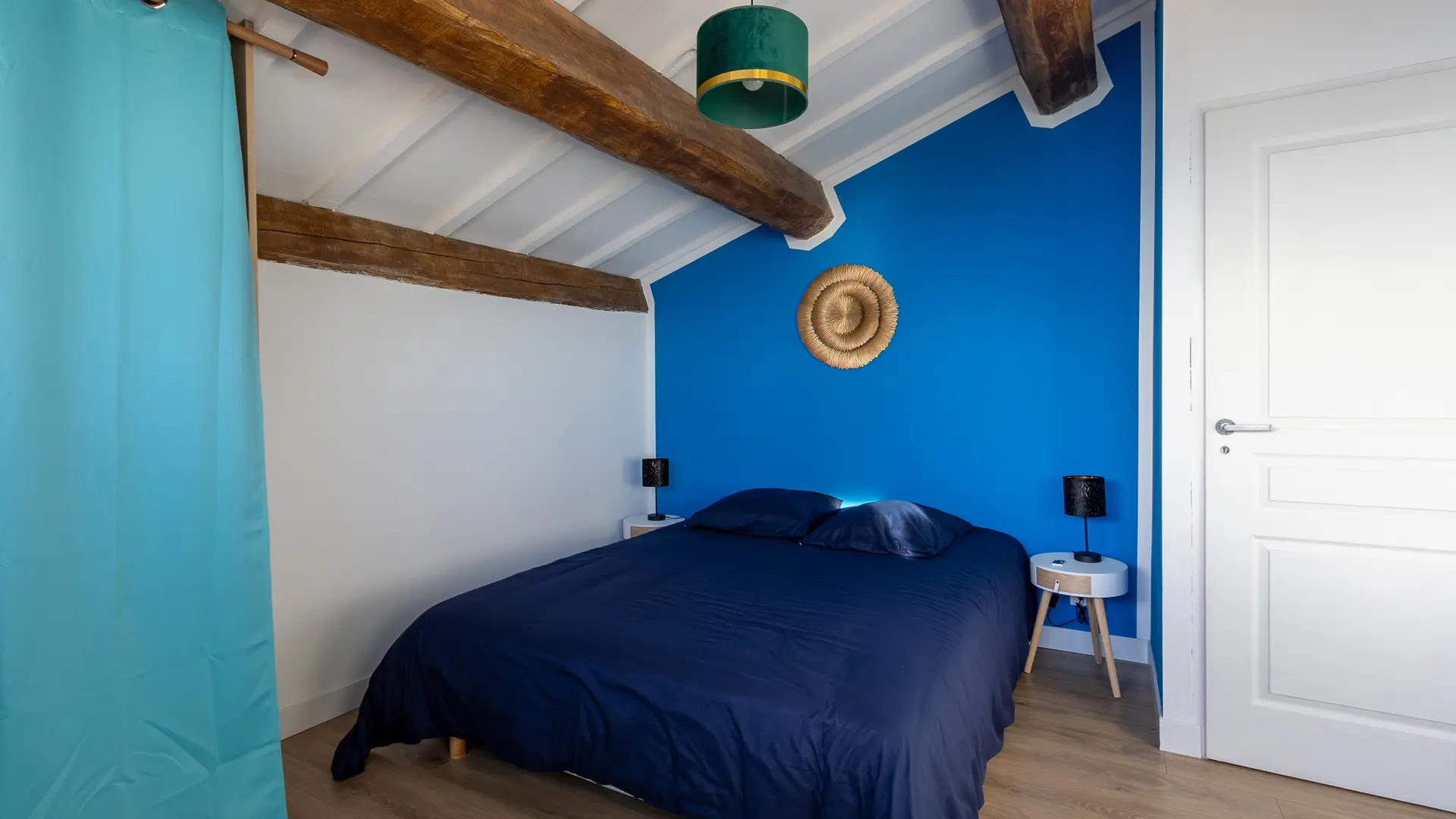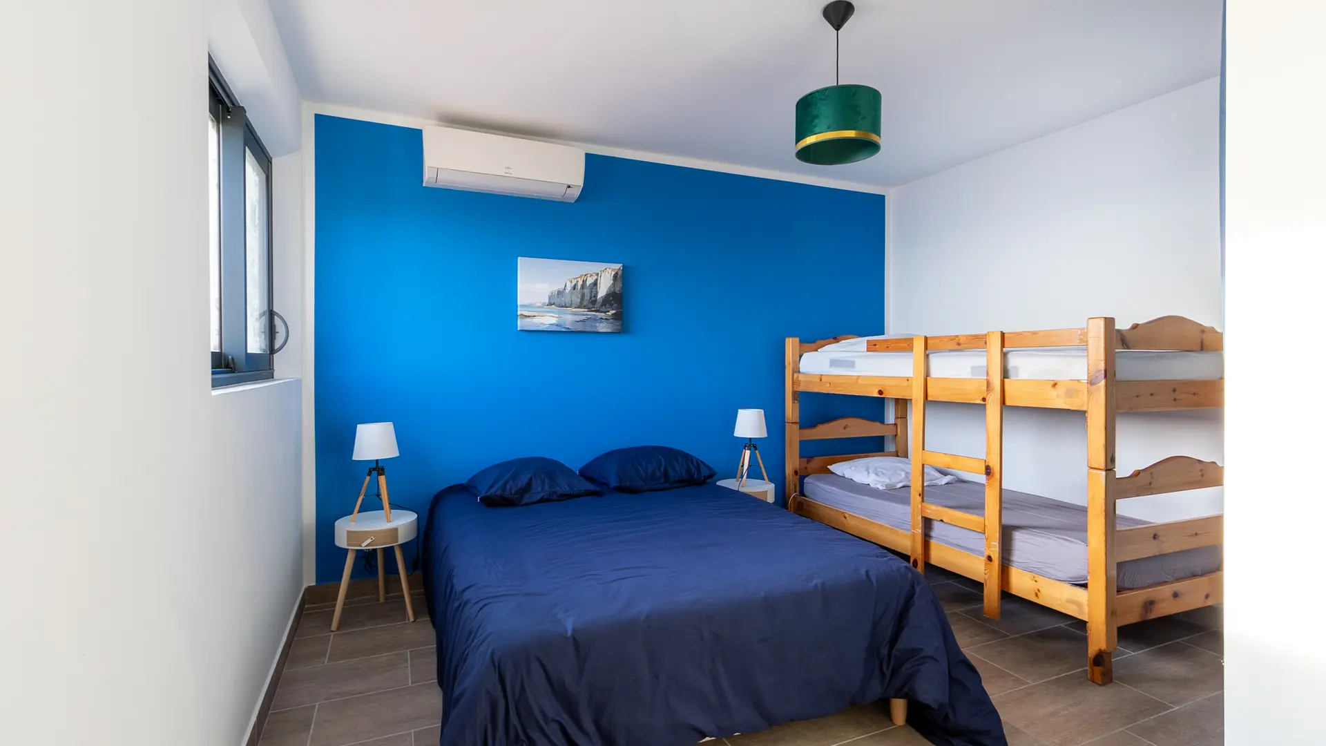 • Une chambre climatisée avec vue mer, lit de 140 et un lit superposé (enfant)