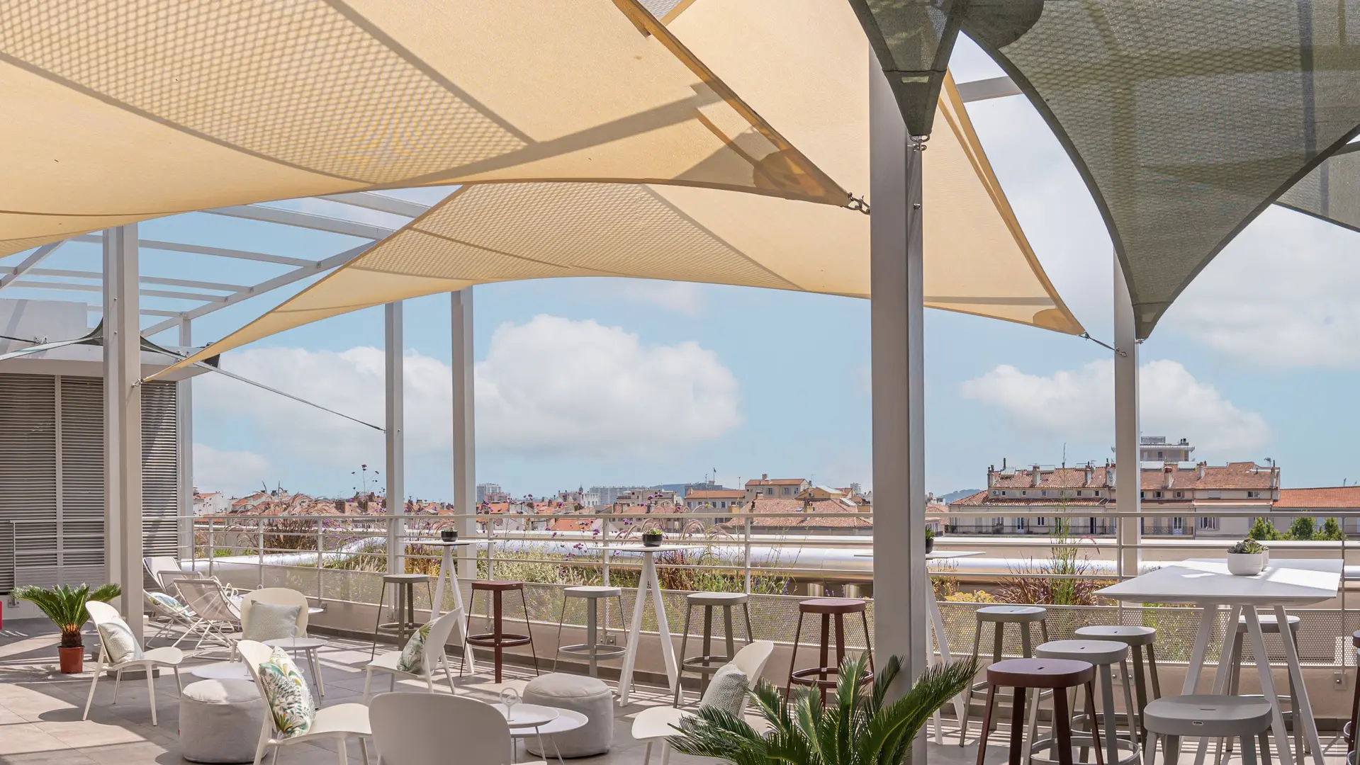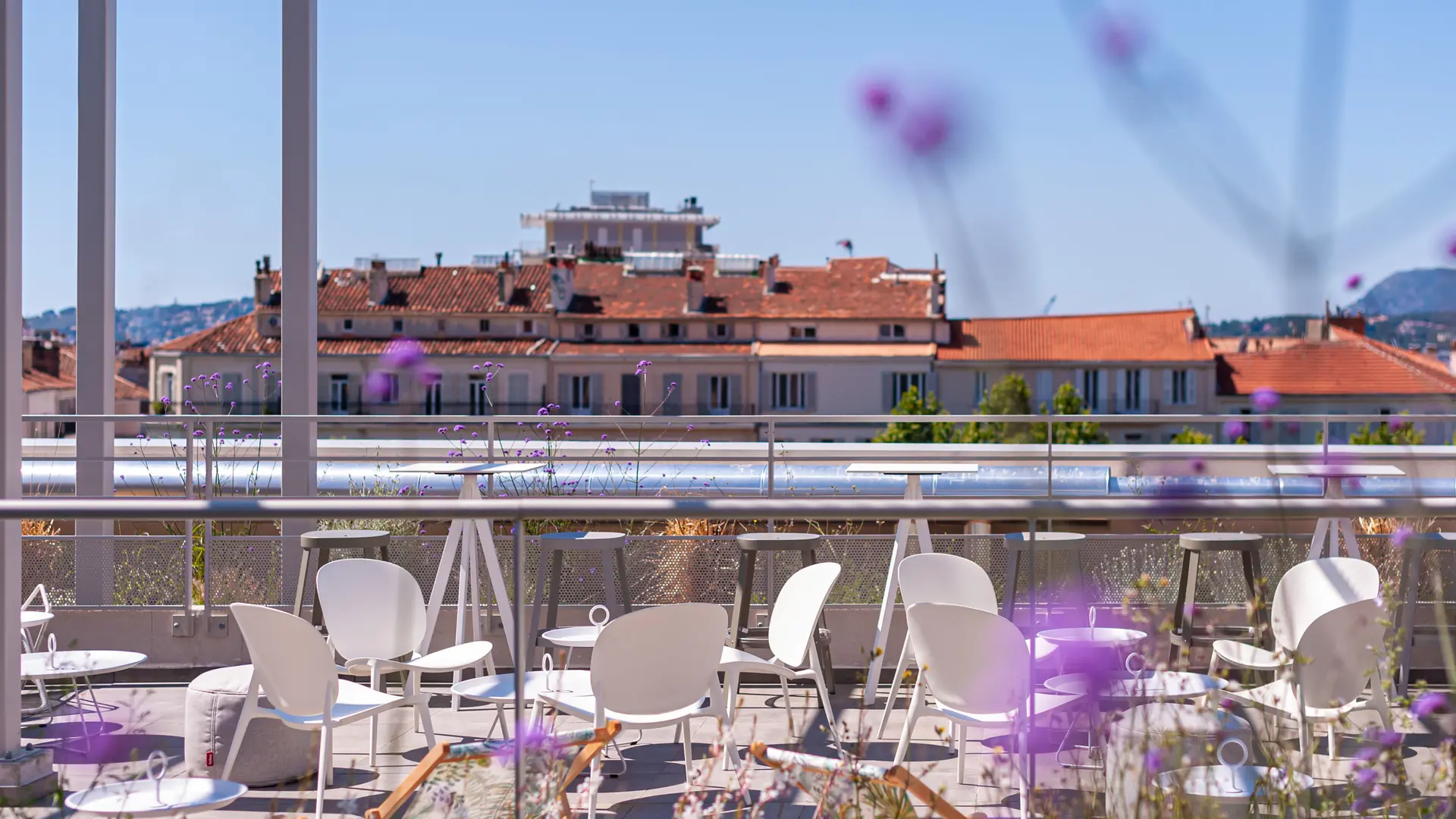 Sur le toit, avec une vue panoramique sur toute la ville, le Mont Faron et le port de Toulon, notre rooftop vous propose une séance de lecture-bronzage, du travail au calme, et selon la saison, siroter un verre tranquillement en écoutant votre playlist préférée.