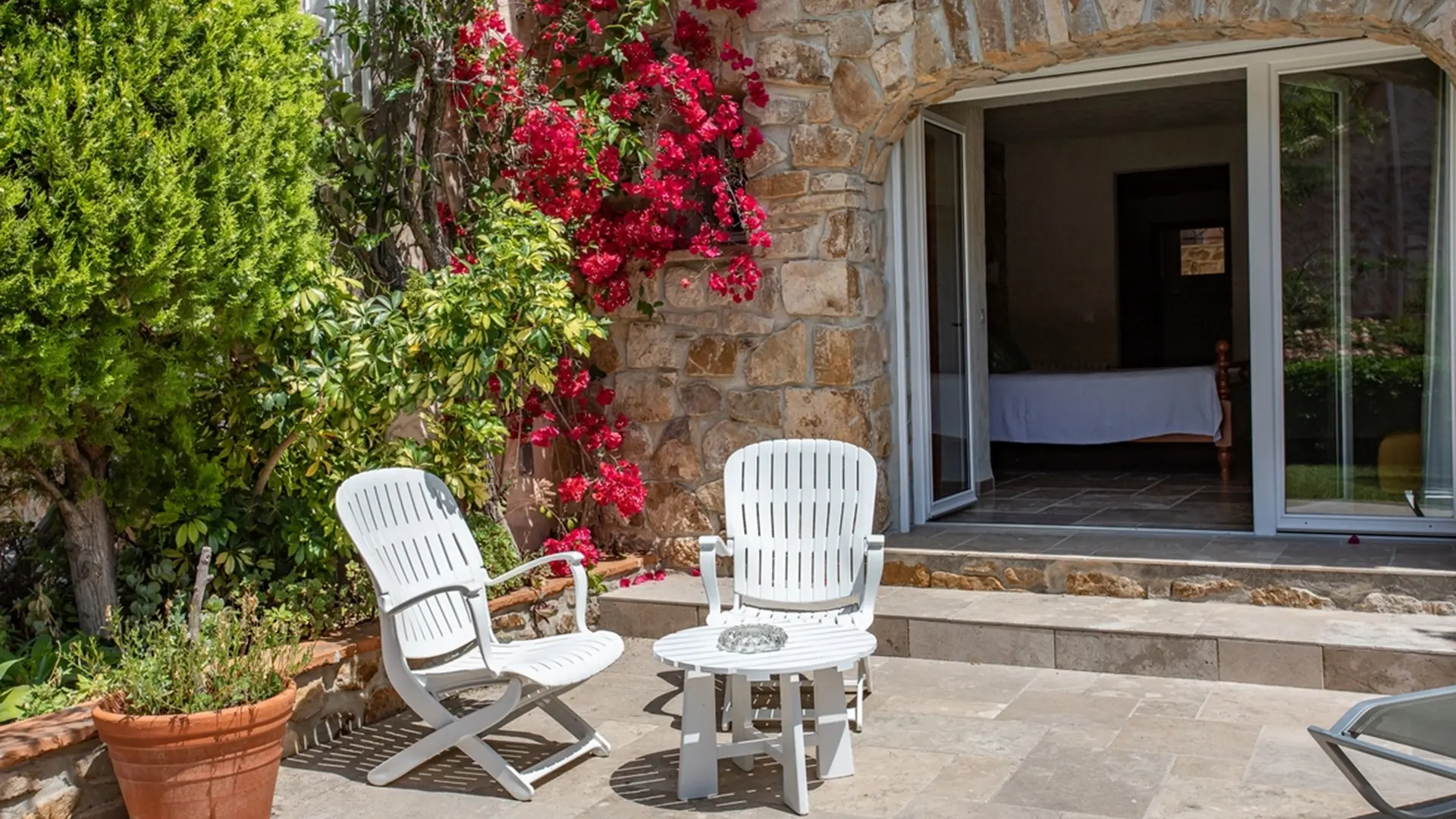 Le jardin : Vous emporterez avec vous le souvenir inoubliable de ce moment d 'harmonie, de paix et d' équilibre avec la nature. Nos jardins privatifs vous invitent à la quiétude et restituent avec charme cette subtile ambiance créée par la lumière, les senteurs florales délicates, les vieilles pierres, ambiance soulignée par la mélodie de l' eau et la symphonie des chants d'oiseaux et des cigales