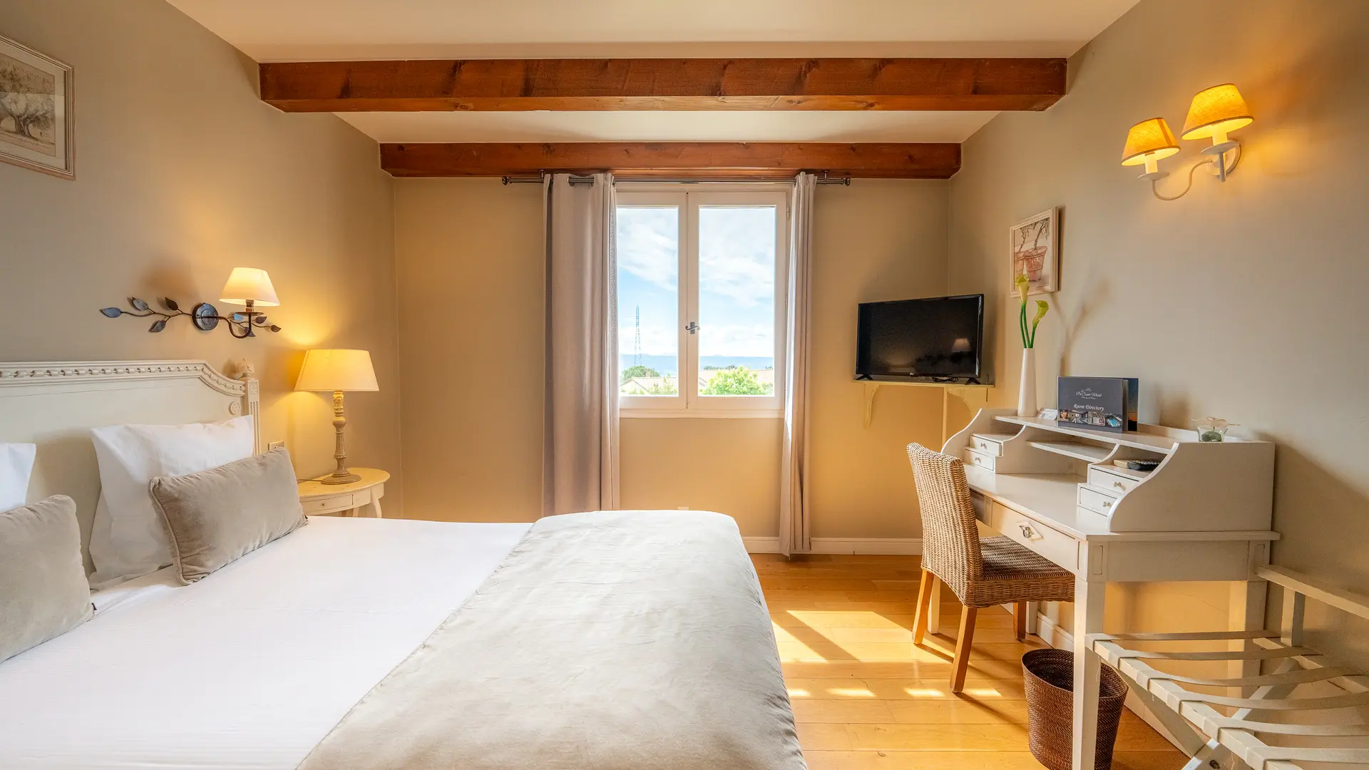 Toutes nos chambres sont différentes, avec tout le confort nécessaire (climatisation, sèche cheveux, mini bar, coffre, TV écran plat), certaines ont également des terrasses privées.