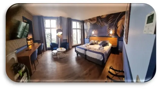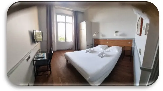 - L’hôtel résidence dispose de 47 chambres, dont 2 chambres adaptées aux personnes à mobilité réduite, réparties sur trois niveaux et desservies par un ascenseur d’époque. Les superficies varient de 15 m² à 29 m², offrant des configurations adaptées aux séjours en solo, en couple ou en famille.