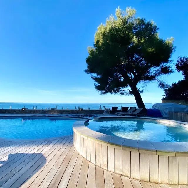 Hôtel de charme 4 étoiles les pieds dans l'eau, la Pinède Plage est un lieu exceptionnel situé dans un magnifique décor naturel protégé sur la plage de Gigaro.