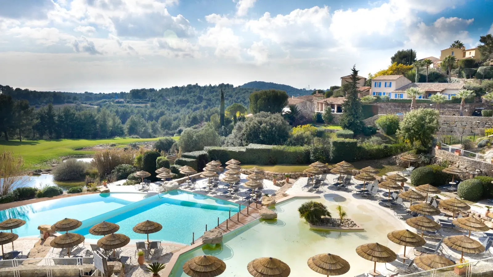 Un resort golfique**** au coeur des vignes, surplombant deux parcours de golf et la mer Méditerranée. Trois piscines extérieures, un spa Sothys et une piscine intérieure, sauna, fitness et tennis.
