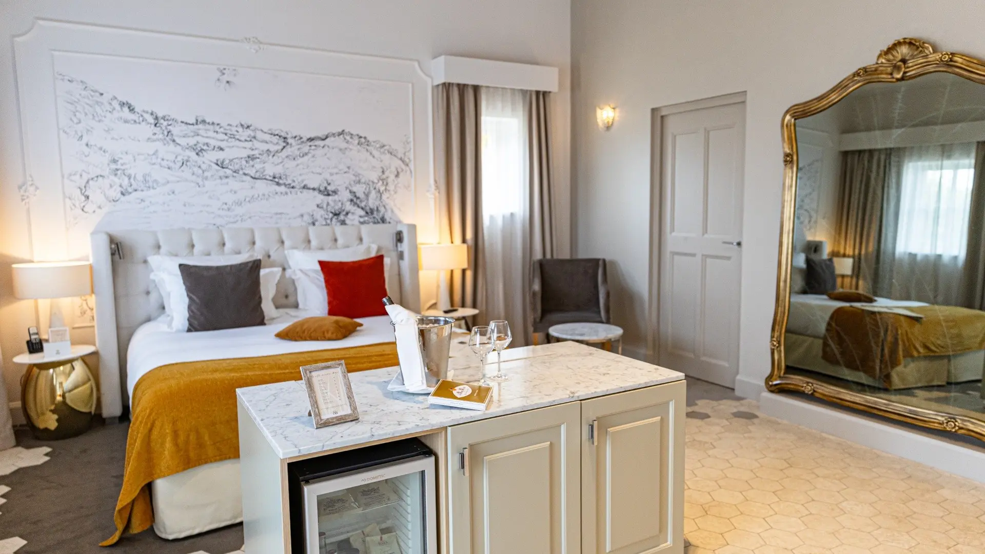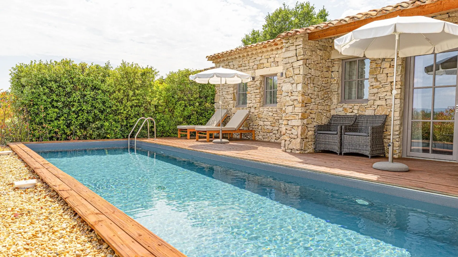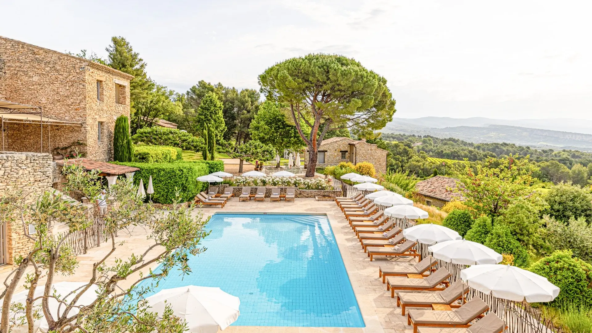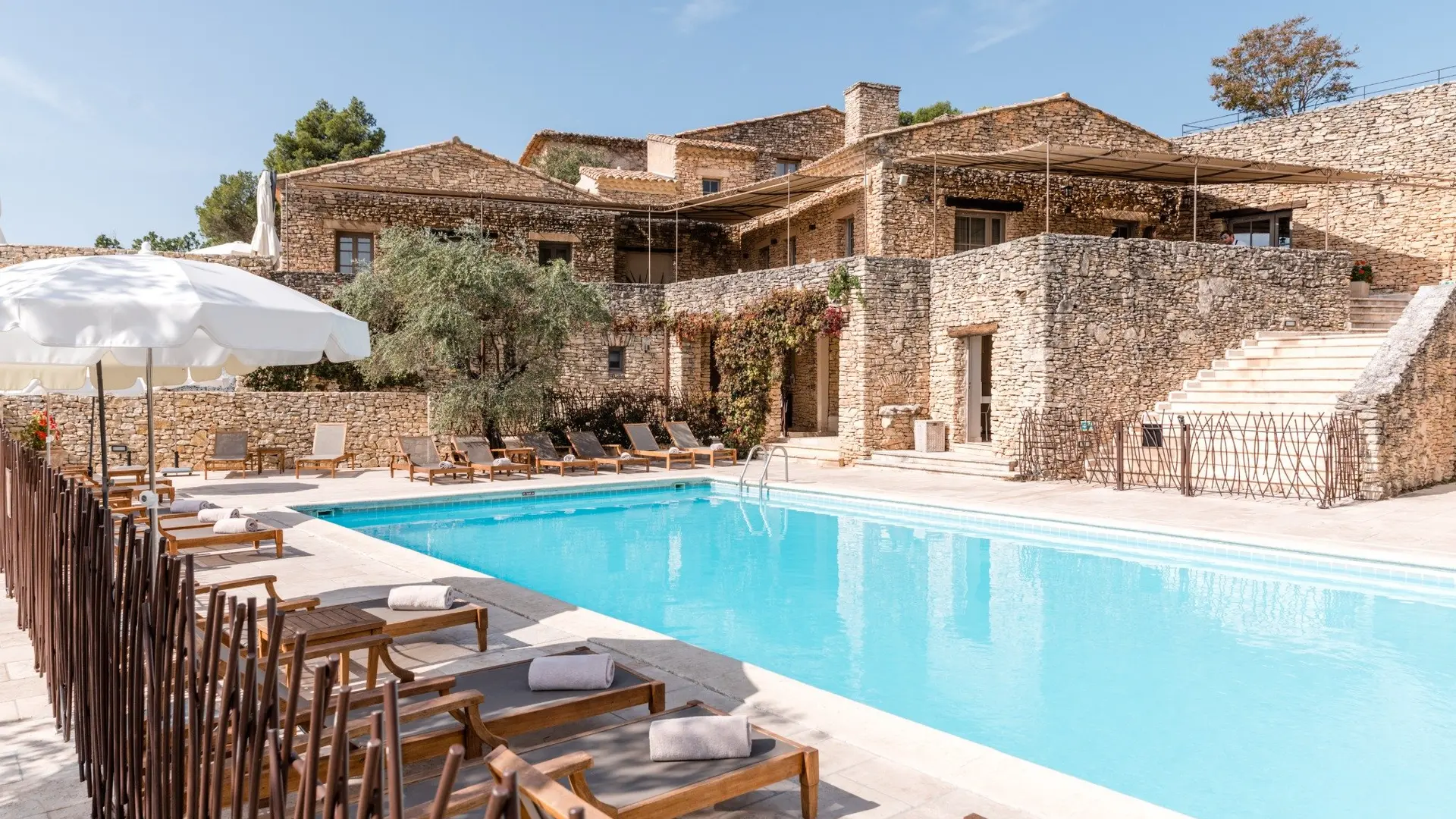 Adossée aux Monts du Vaucluse, avec une vue imprenable sur le massif du Luberon, cette demeure construite en pierres sèches conjugue authenticité et modernité. Savamment conçue à partir de matériaux de la région, elle se fond dans le paysage. Chacune des 48 chambres ou suites luxueuses est dotée d’une terrasse de laquelle le panorama est un constant émerveillement. Décorées avec des matières nobles et raffinées, dans une palette sobre où se déclinent des blancs et des gris, elles invitent au repos et la relaxation. L’établissement propose une piscine, un spa, une salle de fitness ainsi que des équipements spécifiques pour les séminaires d’entreprises.