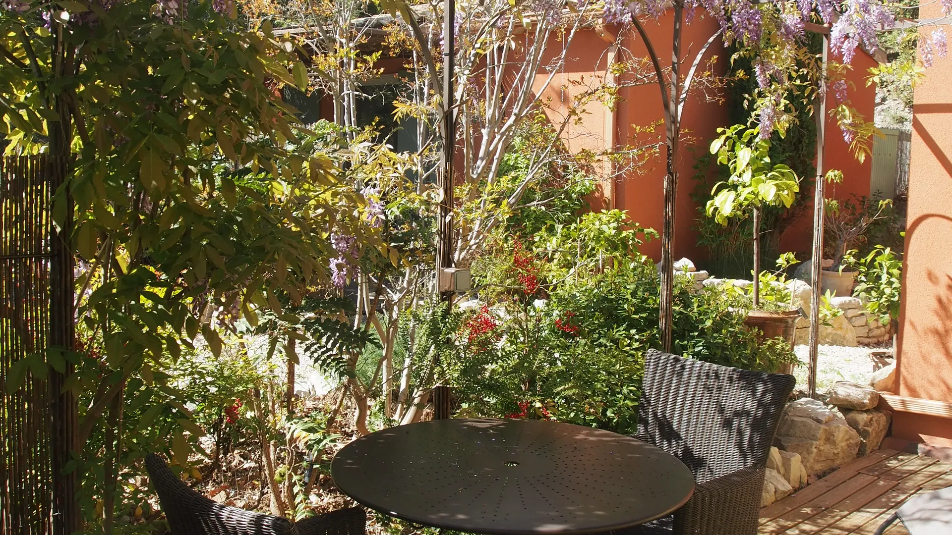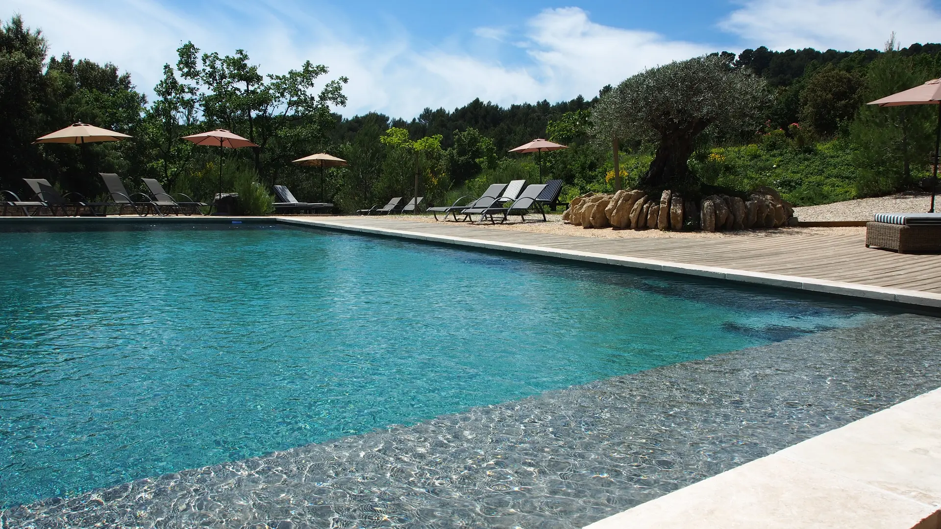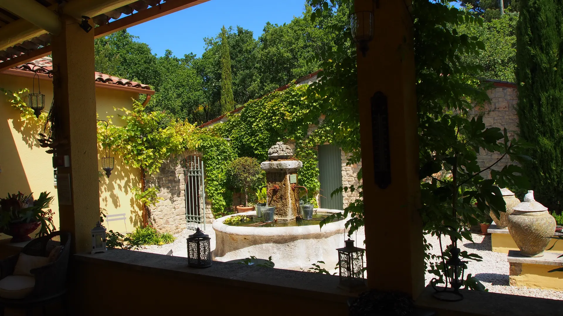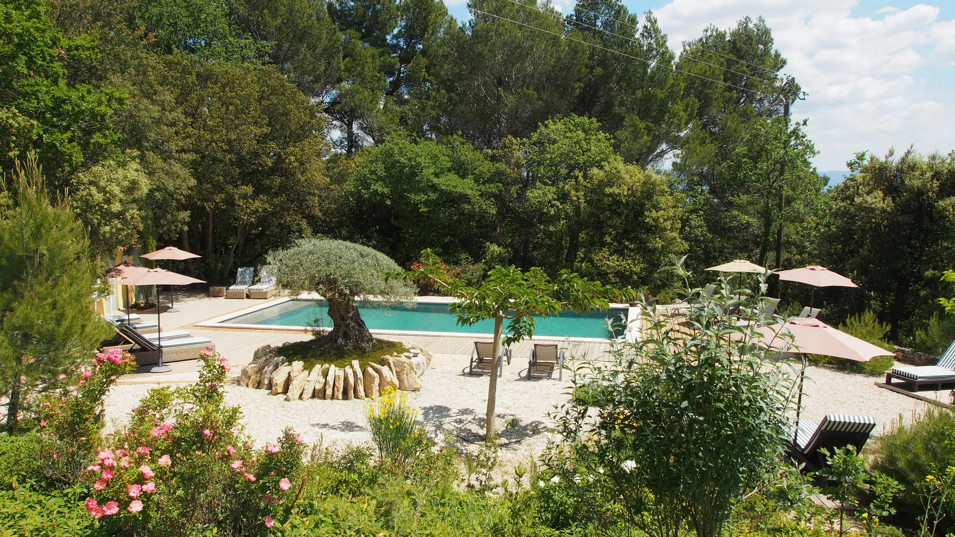 Le parc, de près de 1 hectare, permet également de profiter d'espaces intimistes pour méditer, faire la sieste, le tout bercé par le chant des cigales.