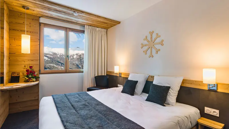 L’Hôtel dispose de 96 chambres confortables, qu’elles soient doubles, triples ou familiales. Toutes proposent un design typiquement montagnard. L’établissement est classé tourisme handicap avec 6 chambres accessibles PMR parmi les Chambres Classiques et Deluxe.