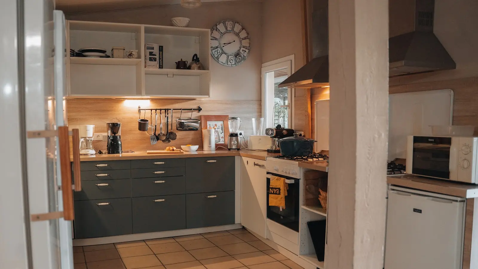 Les espaces communs offrent une cuisine très bien équipée, une grande terrasse couverte, une véranda qui donner sur le jardin, un coin repas ombragé, un vaste jardin arboré, un terrain de pétanque, une table de tennis de table.... , barbecue, lave-linge, abri vélo sécurisé et stationnement sur place complètent les équipements.
