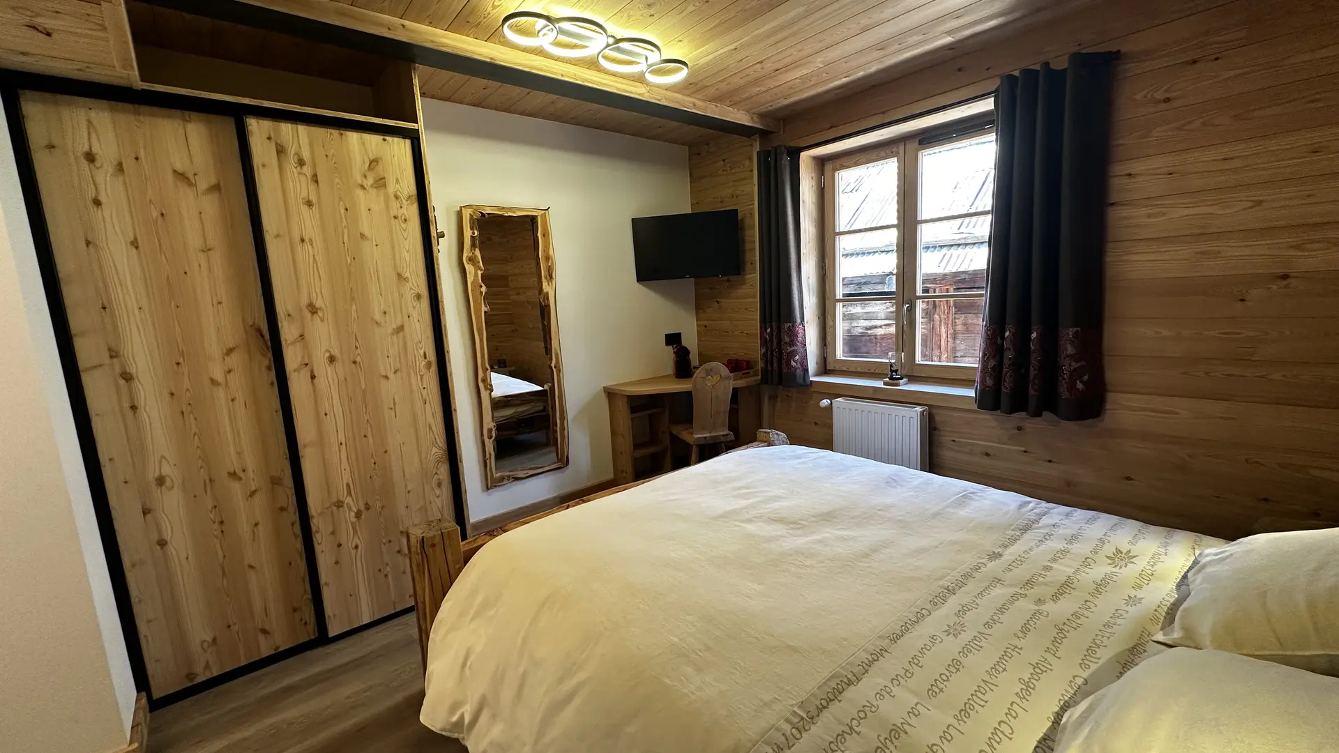 Dans l'ancienne maison emblématique du centre de Ville Haute , trois chambres individuelles neuves très grand confort. Deux suites de 23m2 (dont 5,5m2 en mezzanine) avec coin salon sous toit cathédrale en charpente de mélèze. Avec sa SDE indépendante et placards. Mobilier de style montagne fabriqués par les artisans de Briançon.