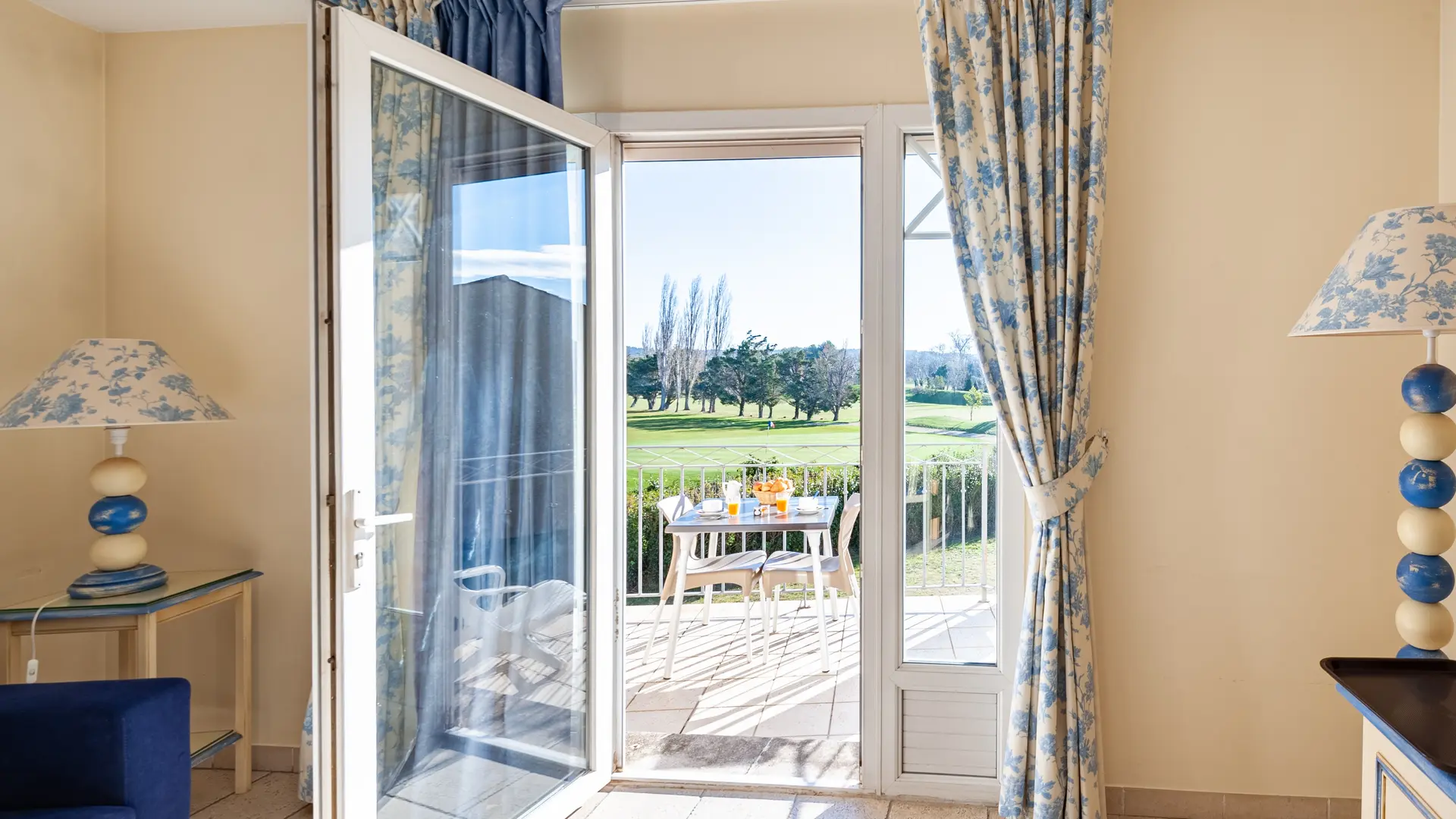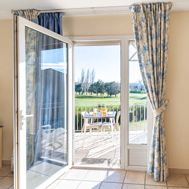 La résidence propose 51 suites et appartements spacieux pour 2, 4 ou 6 personnes avec kitchenette équipée, climatisation, wifi et parking gratuit, idéale pour vos séjours de tourisme ou d’affaire. Chaque appartement dispose d’une terrasse, dont certaines avec vue sur le golf ou la piscine.