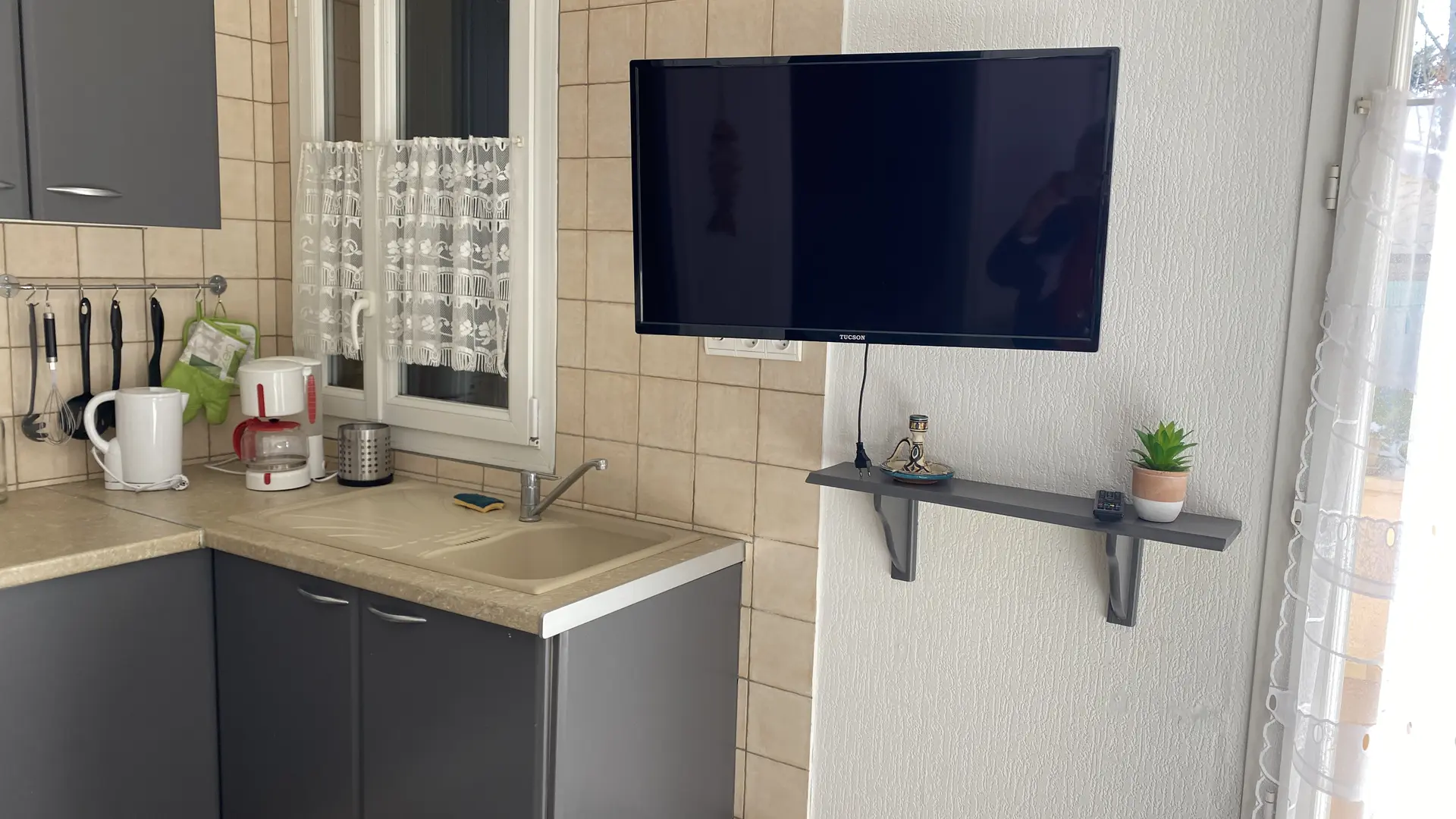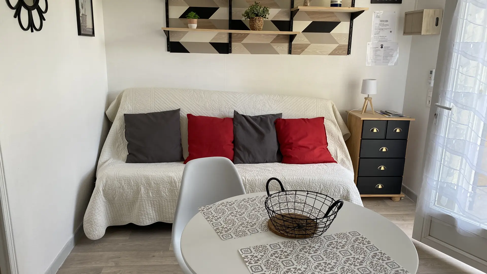 Les appartements, tout confort et refaits à neuf, sont tous de plein pieds avec terrasse, situés dans un havre de paix, avec climatisation. Ils se composent d'une chambre fermée avec 1 grand placard, une grande salle de bain avec douche, une cuisine équipée d'un grand four, une plaque vitrocéramique, un grand frigo-congélateur , une cafetière, grille pain, bouilloire, table et chaises, TV écran plat, un canapé convertible , une belle terrasse avec un salon de jardin.
