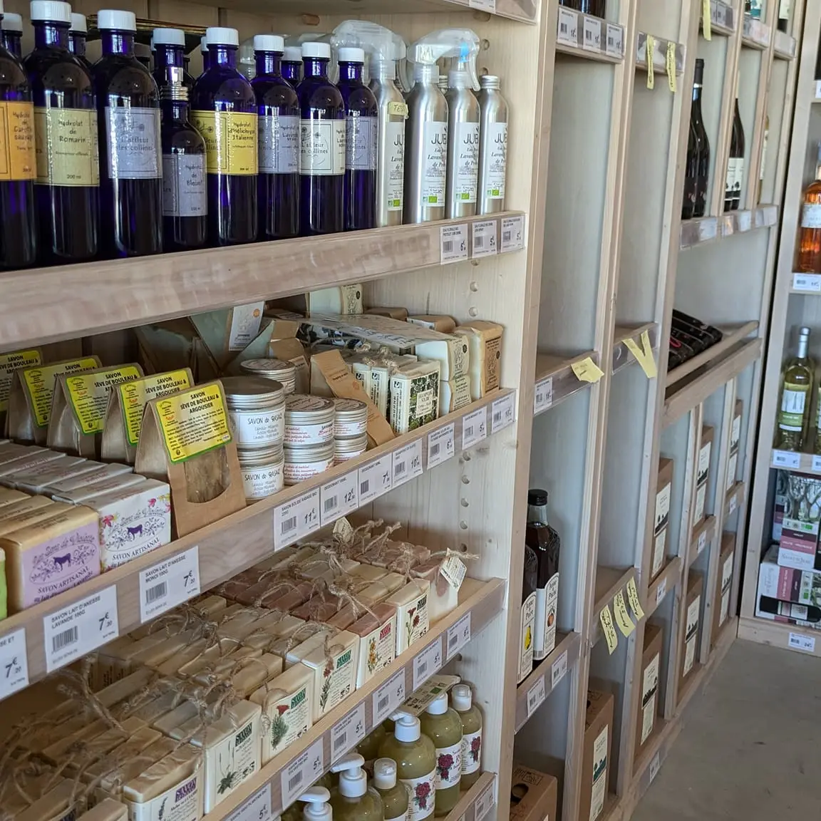 Cosmétiques : savons, huiles végétales, huiles essentielles, shampooing, crème, etc.