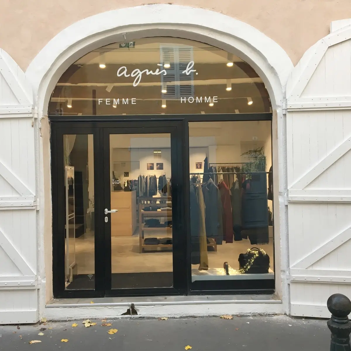 Située au 2 rue Laroque dans les anciennes écuries du quartier Mazarin, la boutique agnès b. propose des vêtements pour femme et enfant.