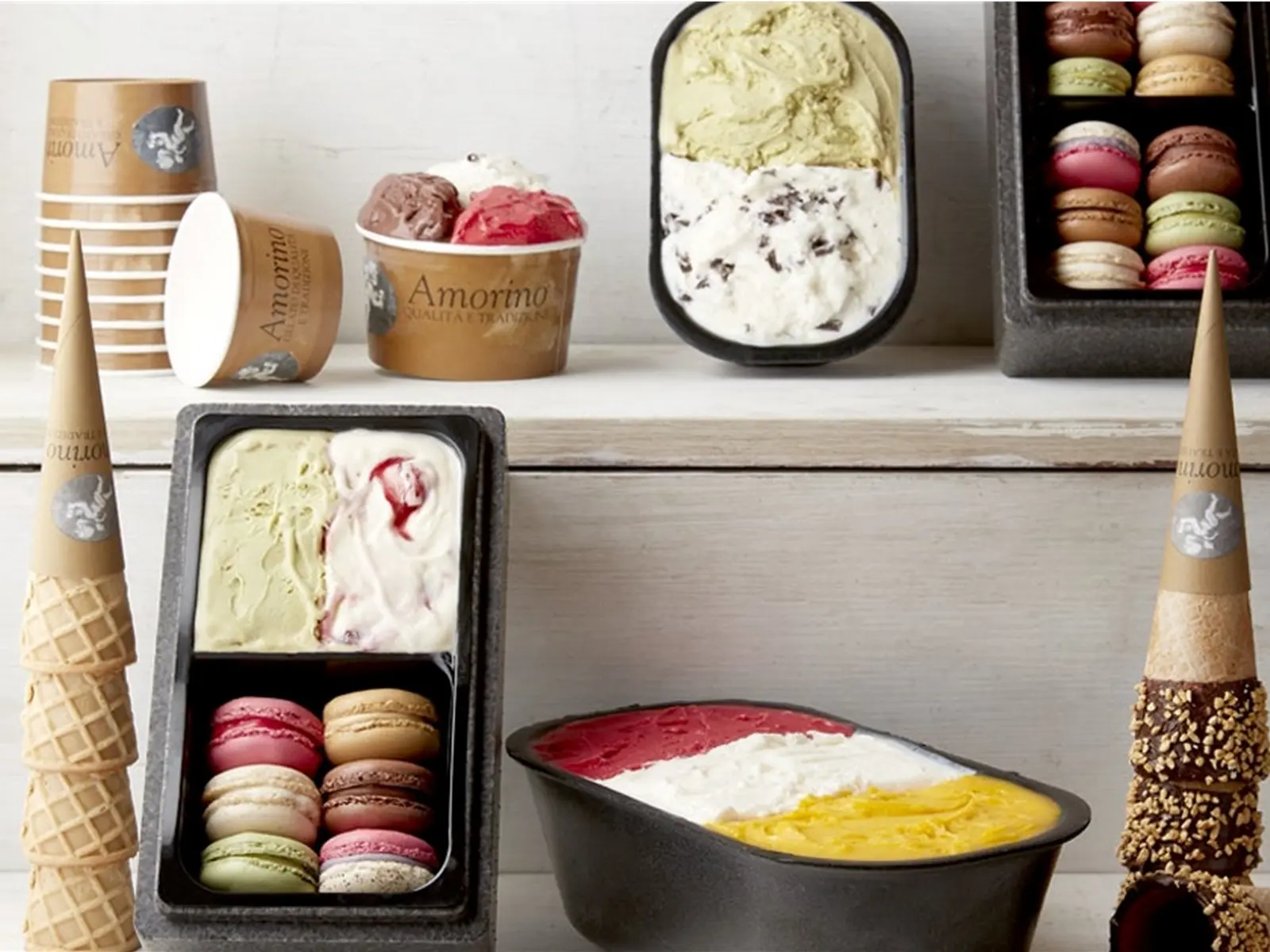 Le glacier Amorino propose une large sélection de gourmandises telles que des glaces et sorbets artisanaux, chocolats, confiseries, crêpes, boissons chaudes, etc.