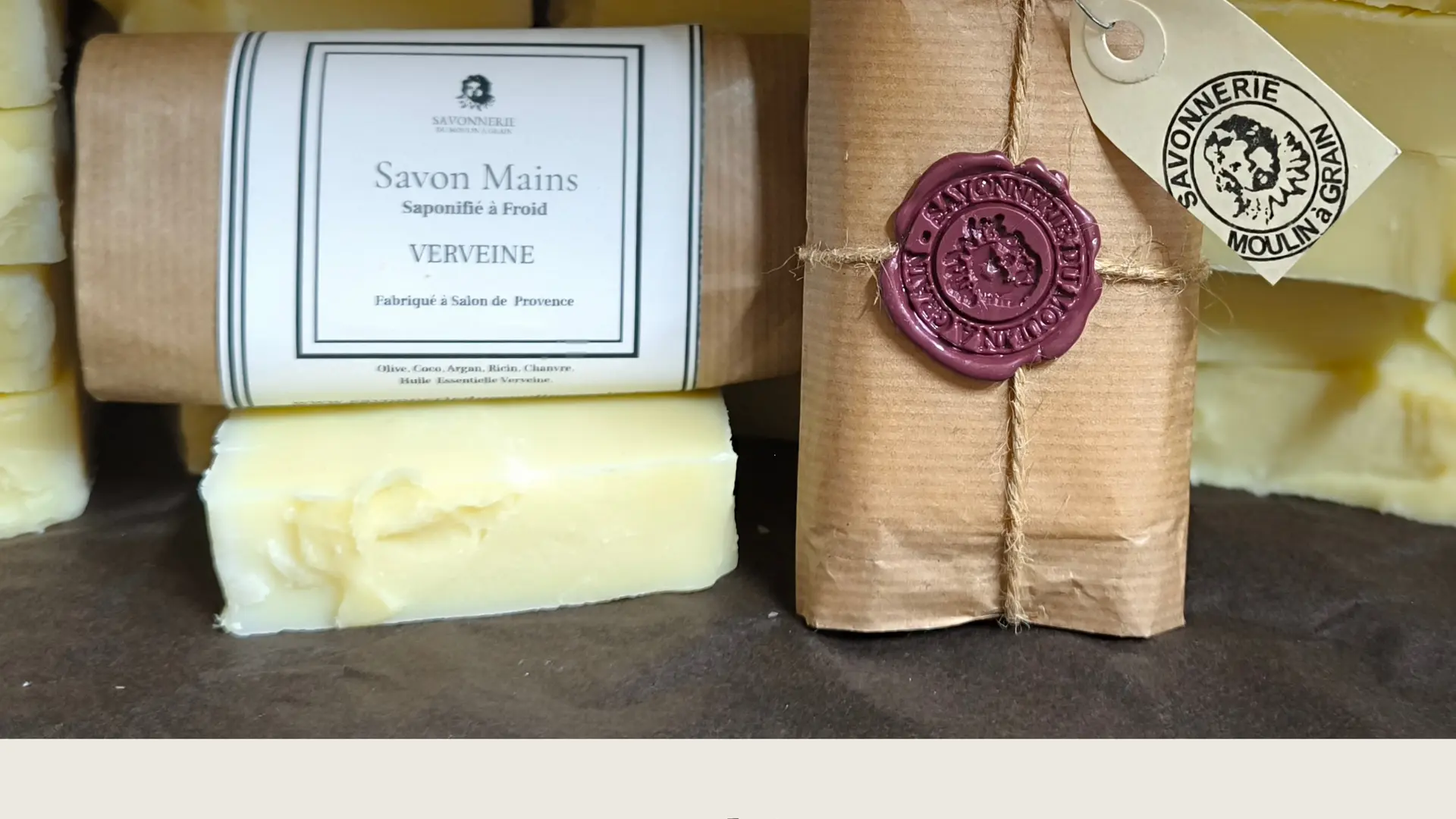 Les savons sont conçus uniquement à base d’huiles végétales. Sans huile de palme, sans colorant, ni conservateur. Des savons faits main, 100 % d’origine naturelle. Dans ce local, nous retrouvons l’histoire la plus ancienne du savon de Marseille à Salon-de-Provence (1882).