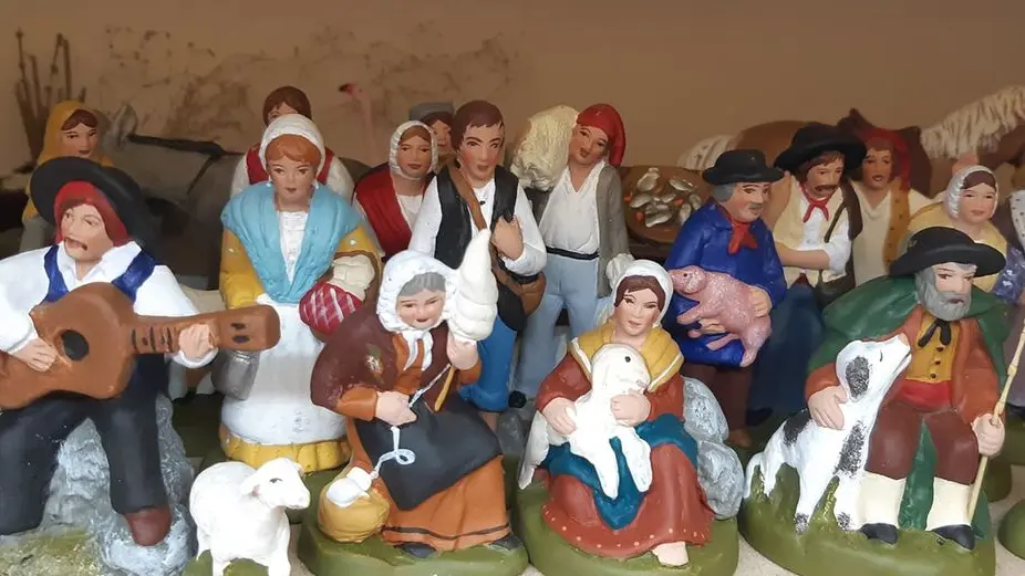 Fabrication artisanale de santons de Provence en argile et décors de crèche.