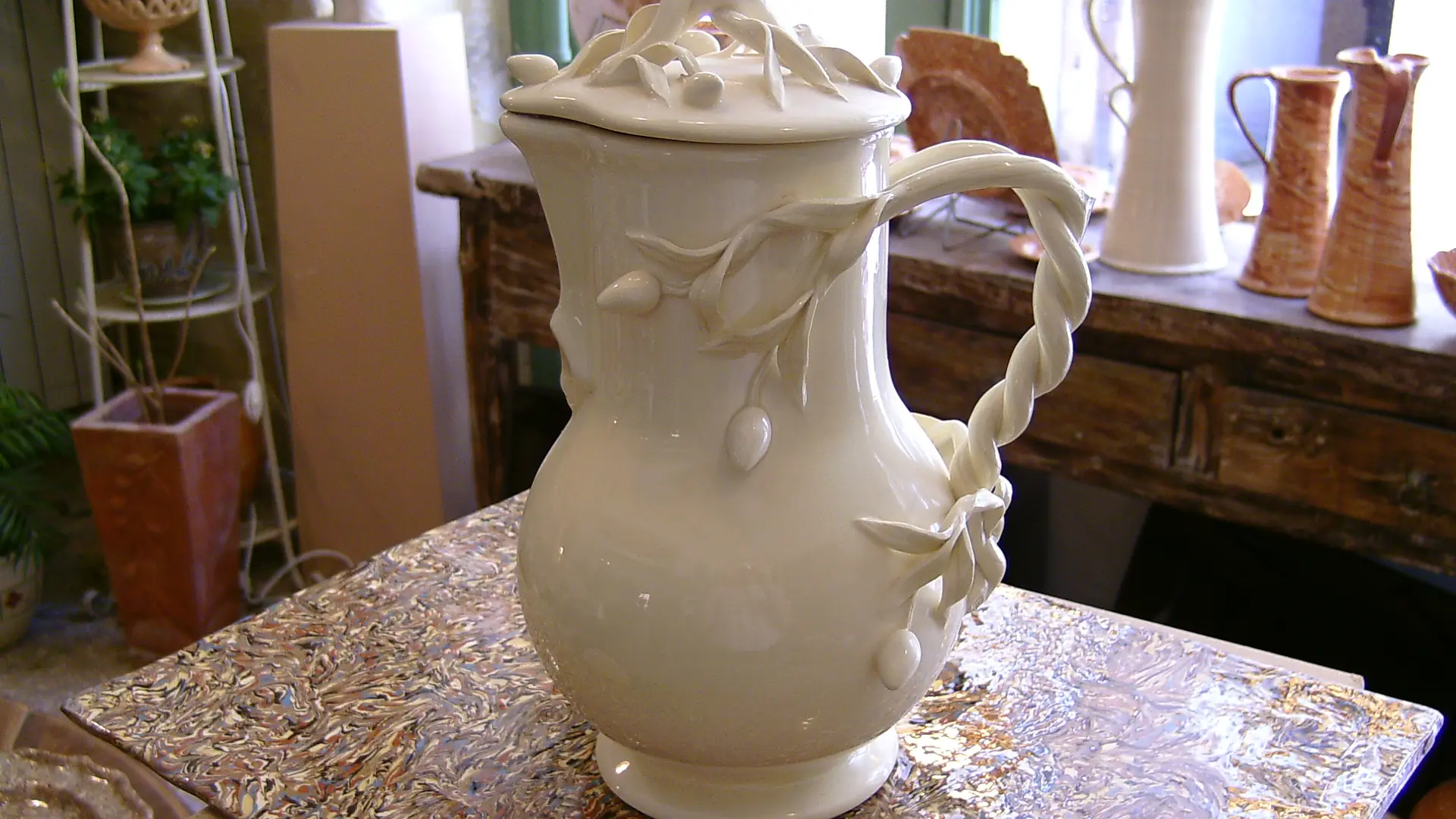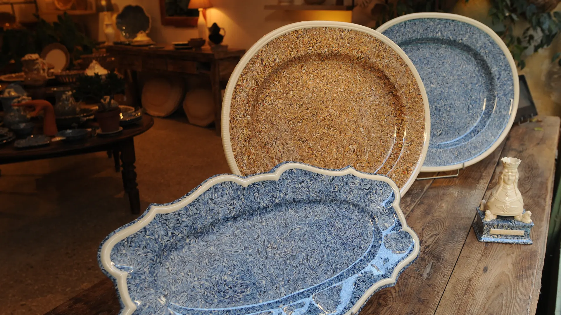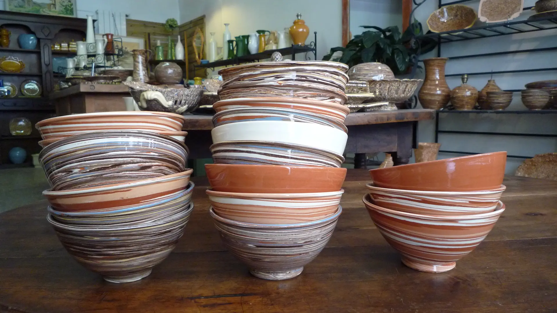 Depuis 1986, l'atelier travaille une faïence fine associée à des pigments naturels (Ocres de France, Gargas), ainsi qu'à l'oxyde de cobalt et oxyde de manganèse.