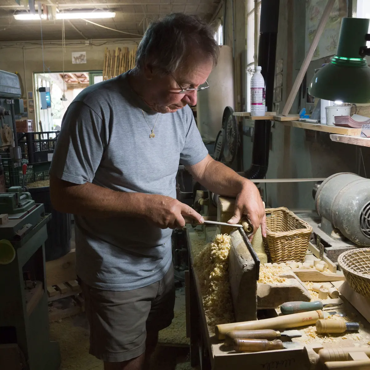 Alain Carpentras est artisan d'art tourneur sur bois. En petites ou grandes séries, il vous montrera le tournage de balustres, poteaux, pieds de tables, quilles et divers objets.